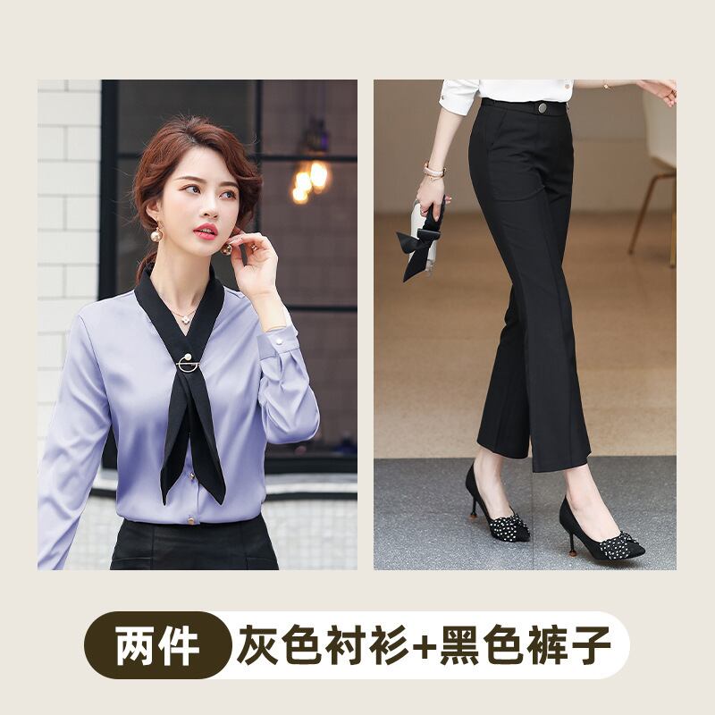 色:白い,グレー,アプリコット,白いシャツ+黒いズボン8310,グレーのシャツ+黒のズボン8310,アプリコットシャツ+ブラックパンツ8310