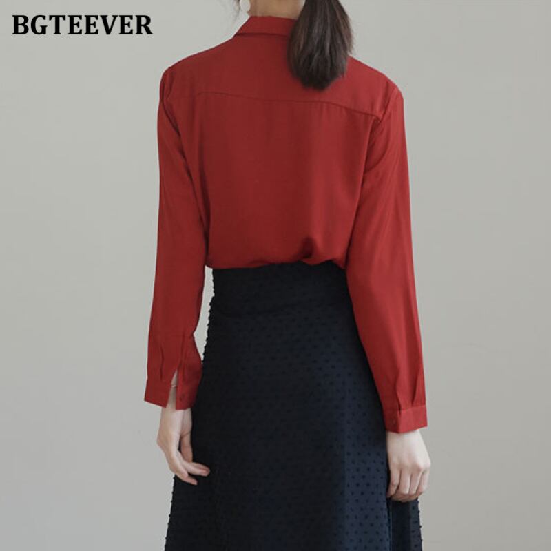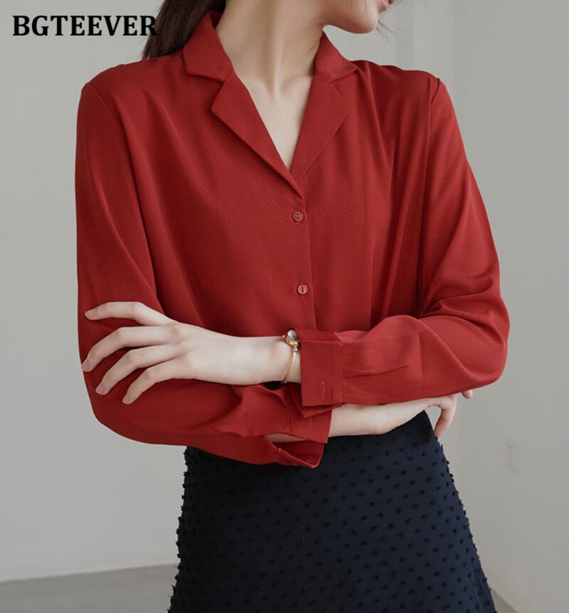【新作】【送料無料】 BGTEEVERヴィンテージノッチカラーブラウストップスサマーオフィスウェアレッドレディースシャツ2020トップス 夏物 ビンテージ 会社 学校 通勤や通学にも 12b132851074735