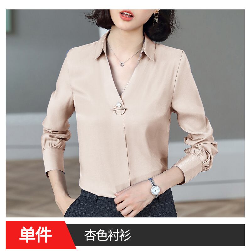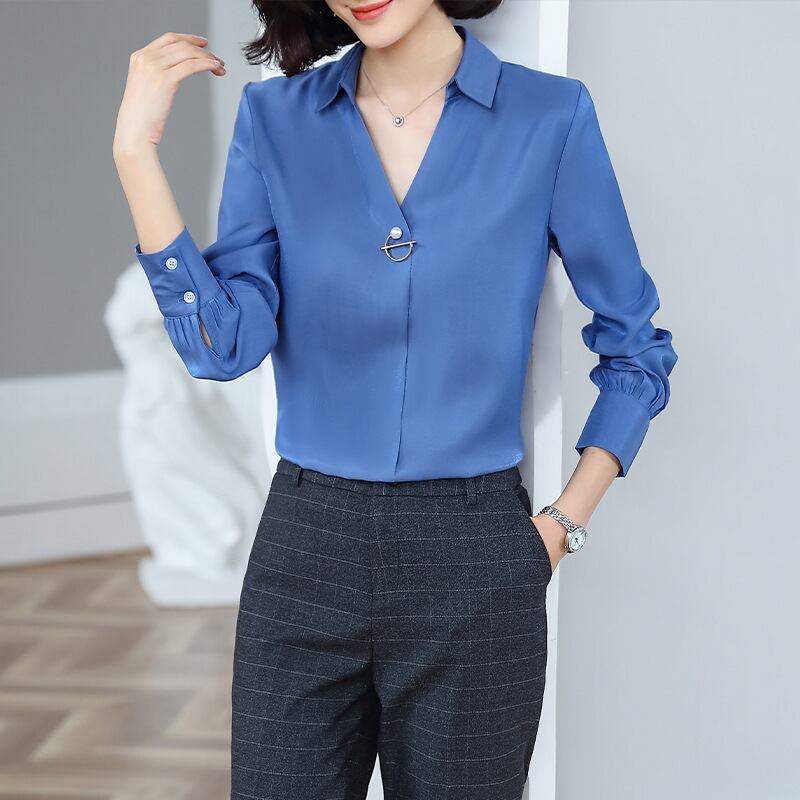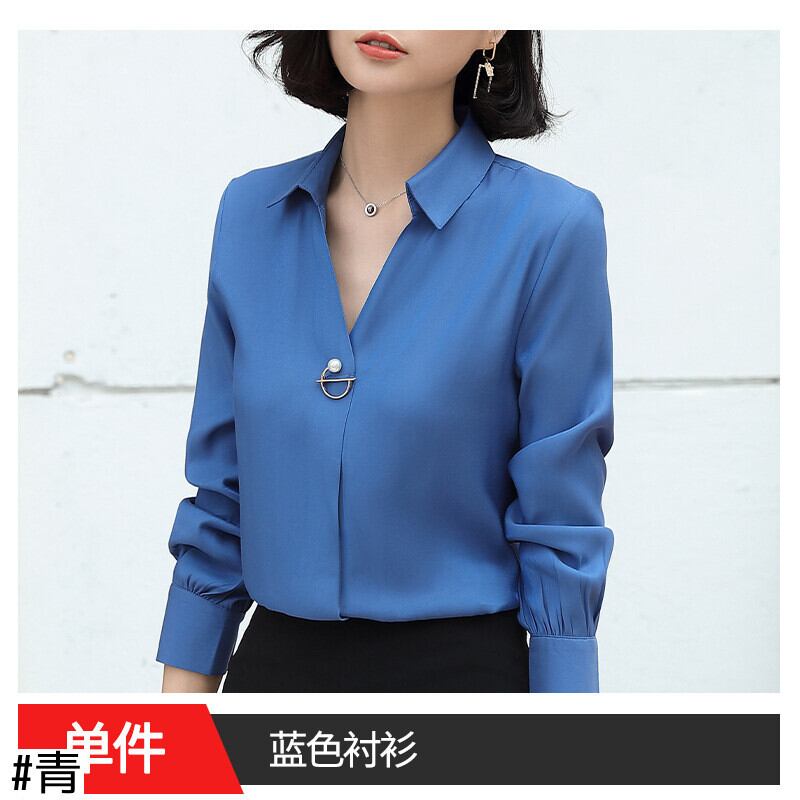 【新作】【送料無料】 本物の春と秋プラスサイズのVネックシャツ女性のイントレンディなファッションシンプルな気質のプロのシャツ長袖薄いスタイル-アリババ ロング 大きめサイズ スプリング 春物 オータム 秋物 12b210068378095