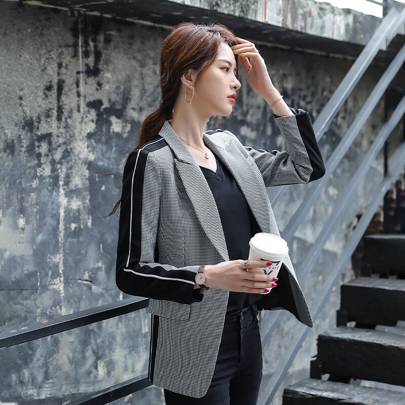 【新作】【送料無料】 Real s2020秋と冬の新しいファッションチェック柄スモールスーツジャケット女性ルーズラージサイズスーツジャケットトレンディなオールマッチ-アリババ 大きめサイズ オータム 秋物 ウィンター 冬物 12b258749350075