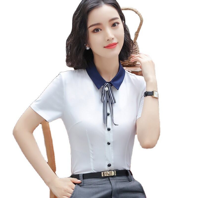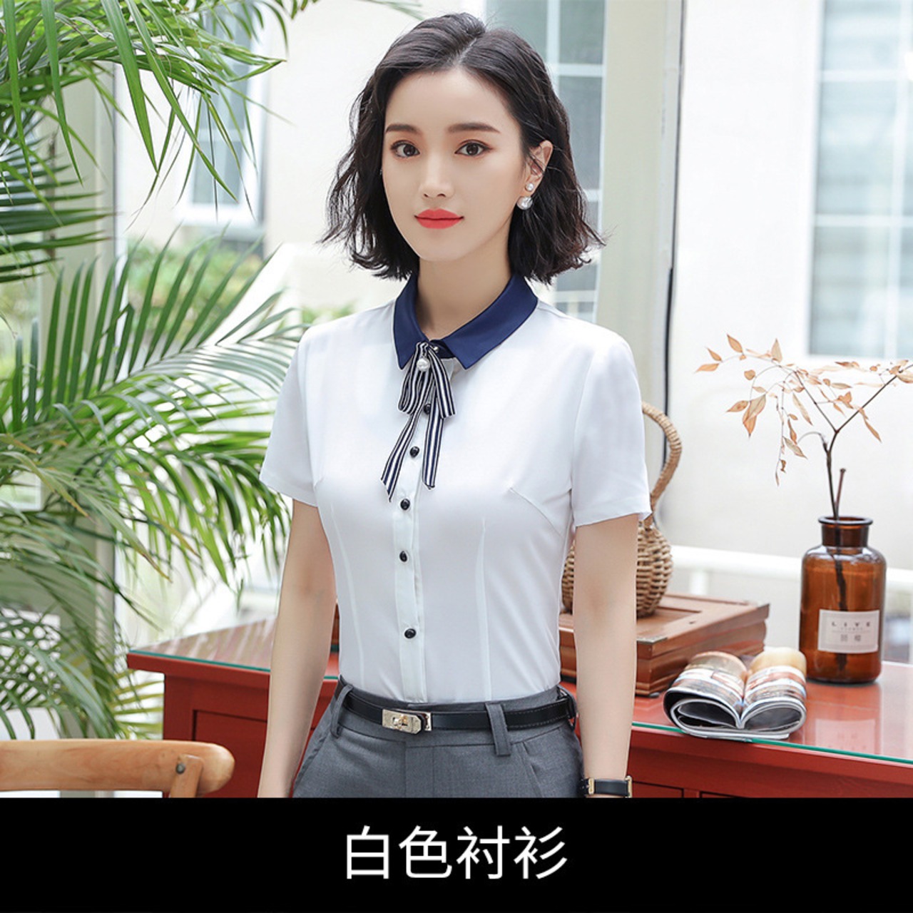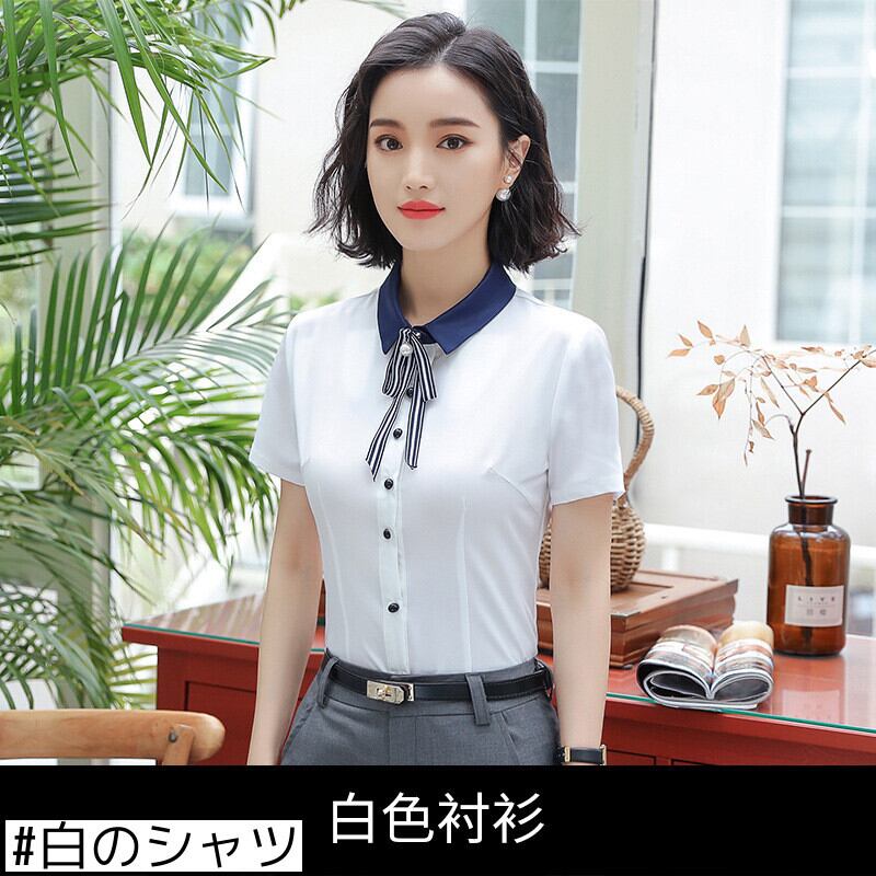 【新作】【送料無料】 Pinzhi夏の新しい白いシャツの女性の半袖プロのトップスファッションスリムビジネスマルウェアOLベースシャツ-アリババ ホワイト サマー 夏物 12b336414742244