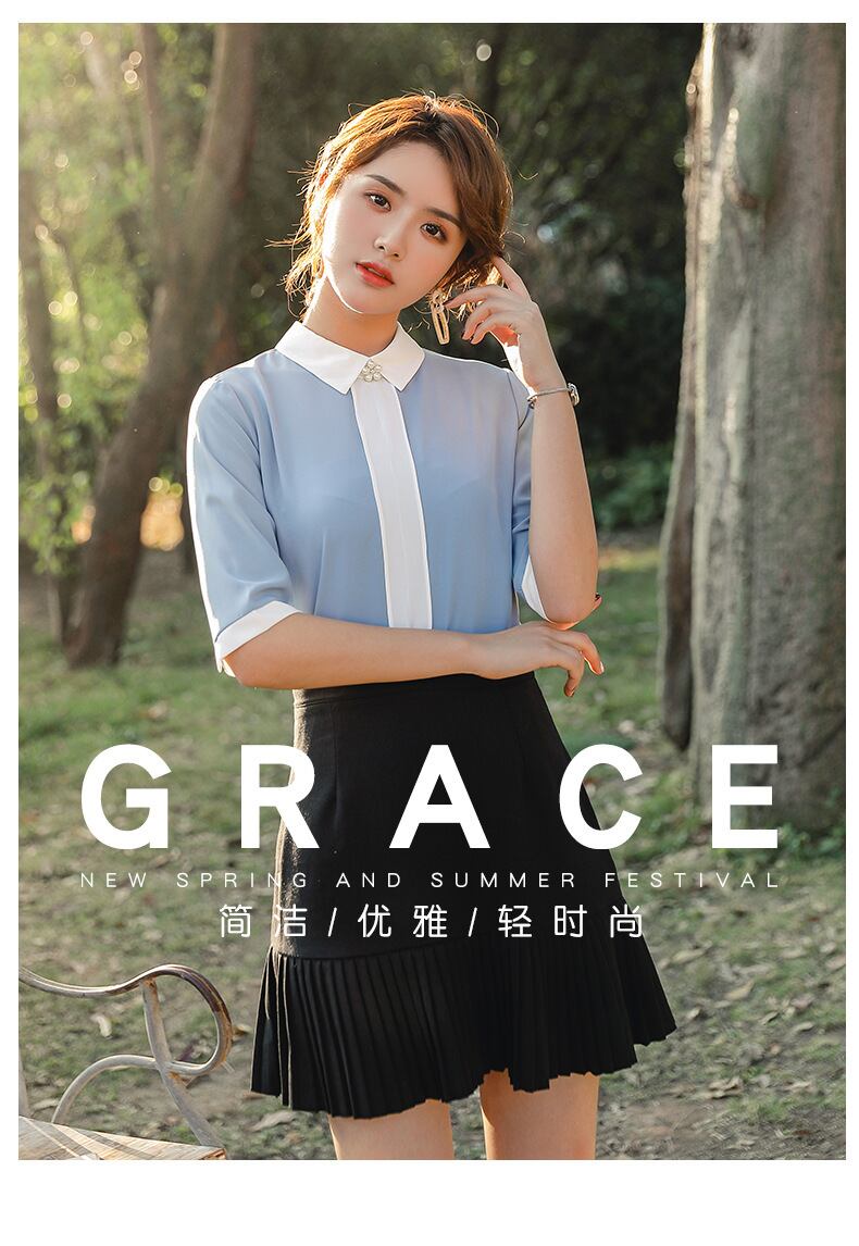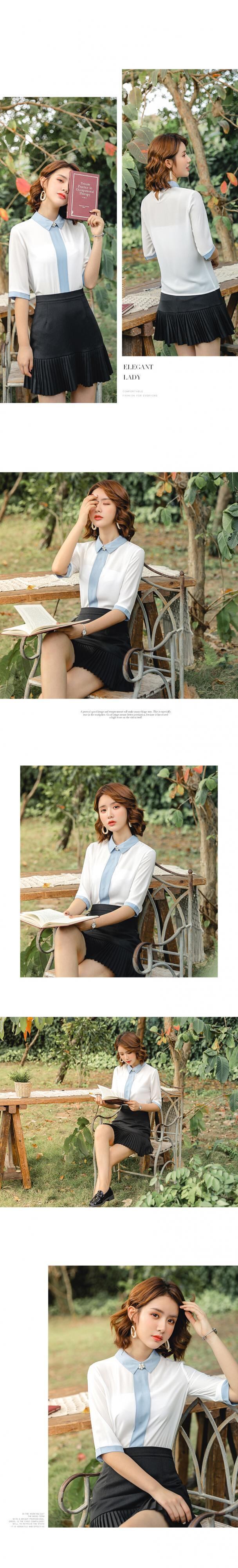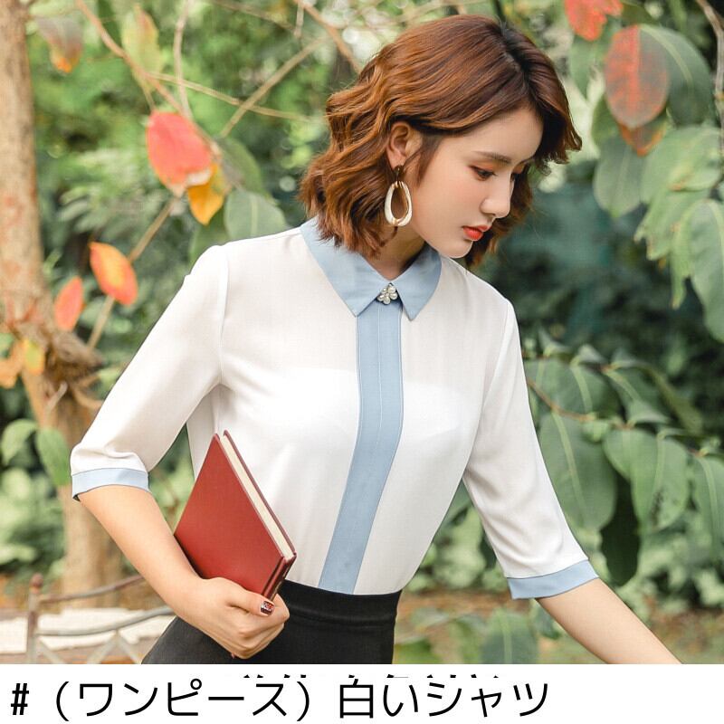【新作】【送料無料】 2021年の新しい春と夏の女性のミッドスリーブシャツコントラストカラーエレガントなラペルシャツミッドスリーブプラスサイズの非鉄のトップ女性-アリババ 大きめサイズ スプリング 春物 サマー 夏物 12b330869613217