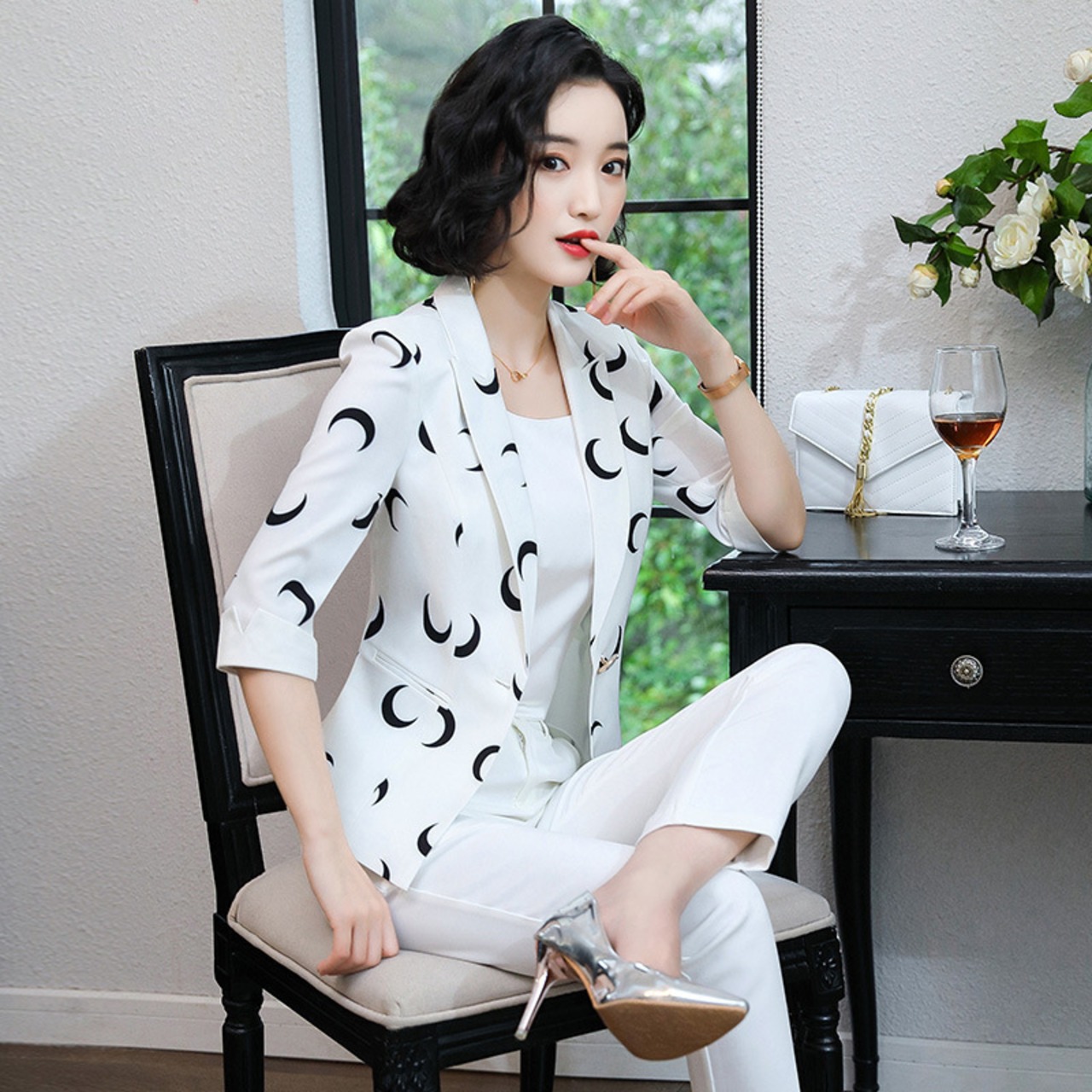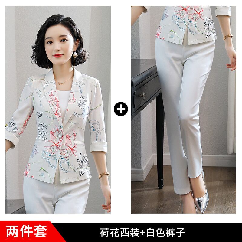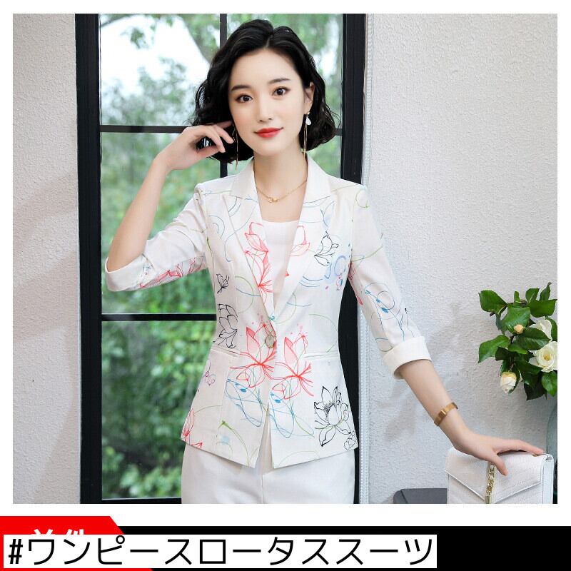 【新作】【送料無料】 2020新しいスーツの女性のファッション小さなスーツ春のスーツの女性の気質ミッドスリーブプリントスーツ作業服夏のスーツ-アリババ スプリング 春物 サマー 夏物 12b360833556470