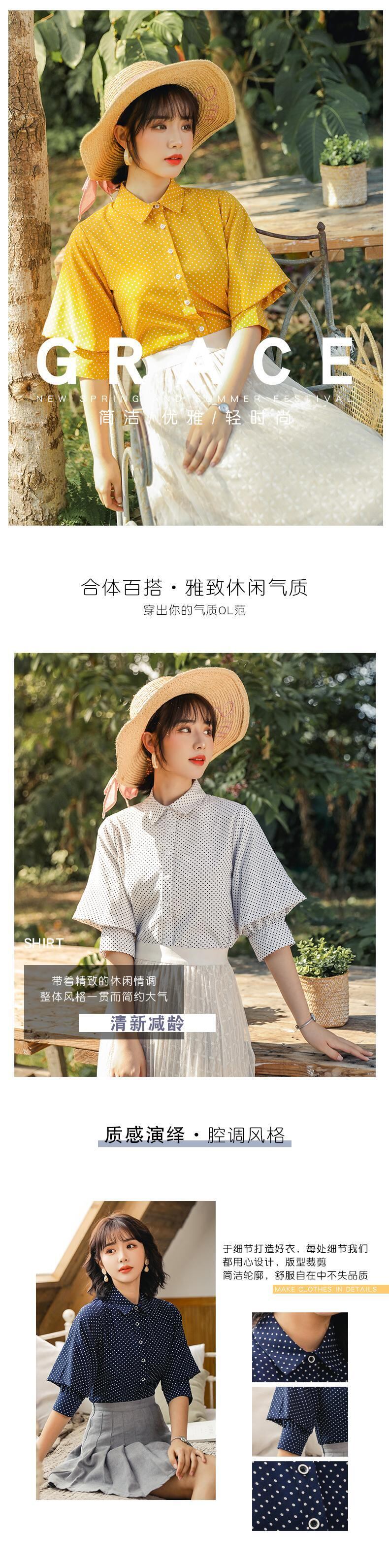 色:(ワンピース)白いシャツ,(ワンピース)イエローシャツ,(ワンピース)ブルーシャツ,白シャツ+アプリコットスカート,黄色いシャツ+アプリコットハーフスカート