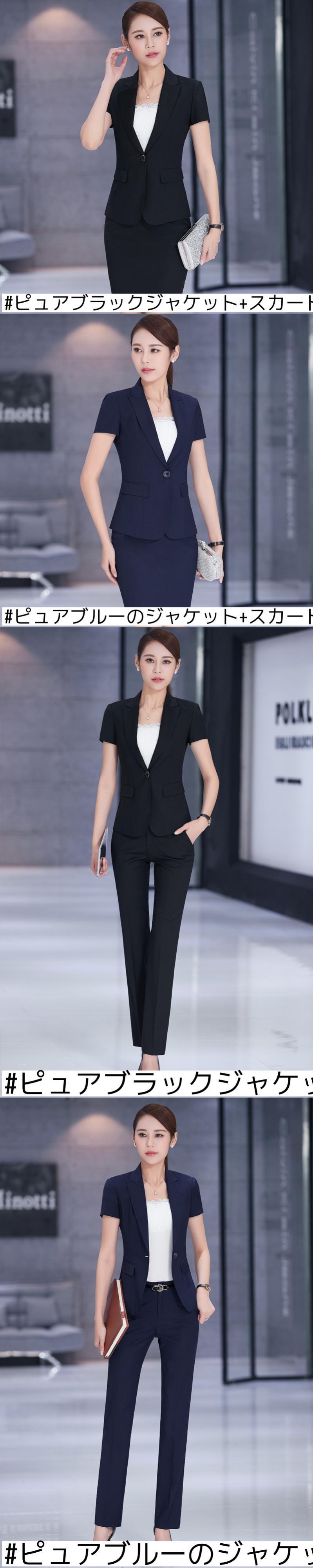 色:ピュアブラックジャケット+スカート,ピュアブルーのジャケット+スカート,ピュアブラックジャケット+パンツ,ピュアブルーのジャケット+パンツ,黒のストライプジャケット+スカート,ブルーのストライプジャケット+スカート,グレーのストライプジャケット+スカート,黒のストライプジャケット+パンツ,ブルーストライプジャケット+パンツ,グレーのストライプジャケット+パンツ