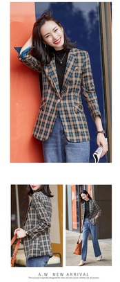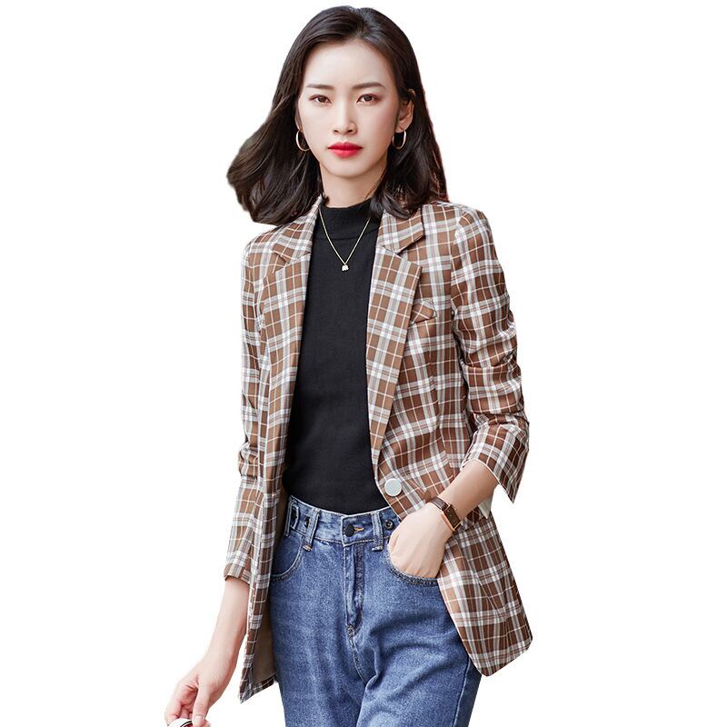 【新作】【送料無料】 ins tide2020の新しいチェック柄の小さなスーツジャケットの女性の春と秋のルーズな大きなサイズのスーツジャケットの実際のバージョン-アリババ 大きめサイズ スプリング 春物 オータム 秋物 12b241553764682