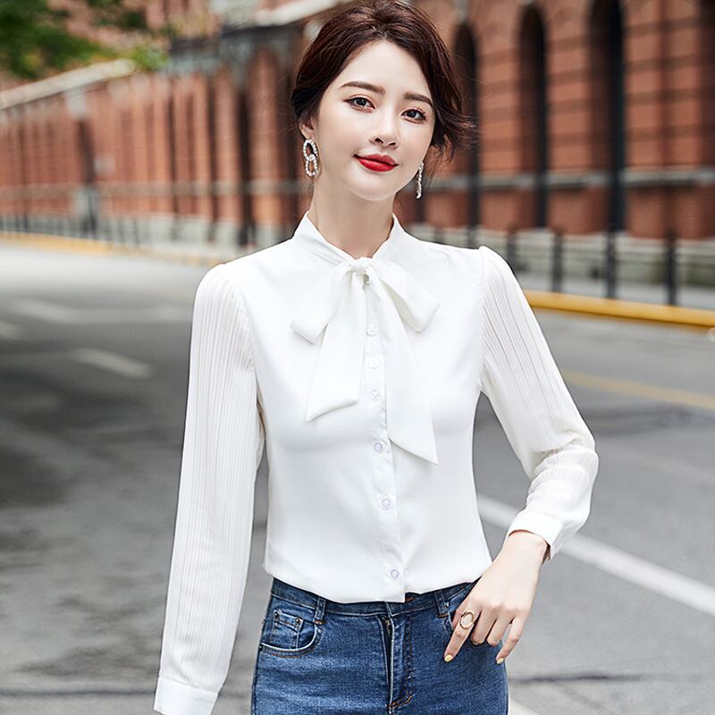 【新作】【送料無料】 2020年の新しいプロシャツの女性の秋と冬のウェアのリアルのファッションオールマッチ長袖薄シャツ気質ストリーマーバージョン ロング オータム 秋物 ウィンター 冬物 12b216203757024