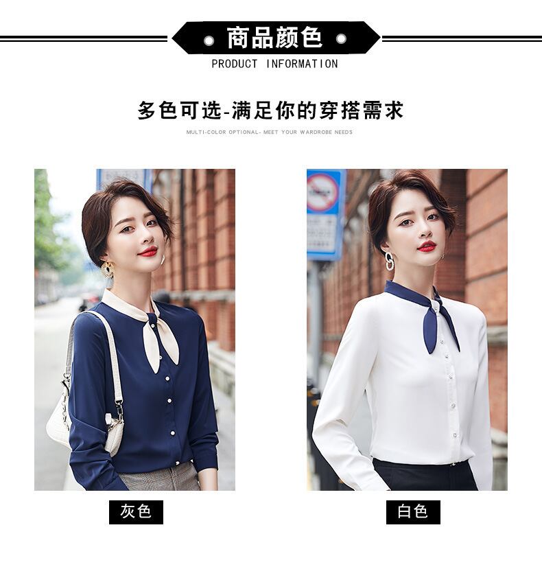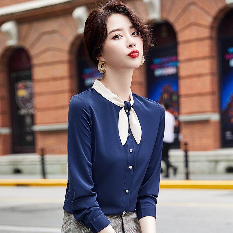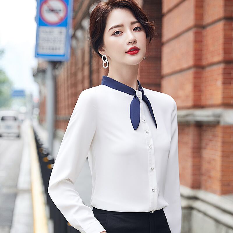 【新作】【送料無料】 本物のカジュアルなオールマッチスプライシングネックラインシャツの女性の春と秋の新しいスタイルのデザインセンスニッチシャツアンチリンクルタイド-アリババ スプリング 春物 オータム 秋物 12b221433691245