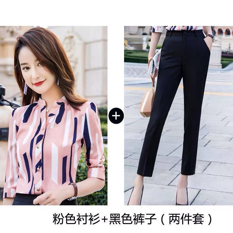 【新作】【送料無料】 ストライプのプロのシフォンシャツの女性2020年春の新しいファッションシャツスリムで薄い気質ネットレッドトップ-アリババ スプリング 春物 12b338633257898