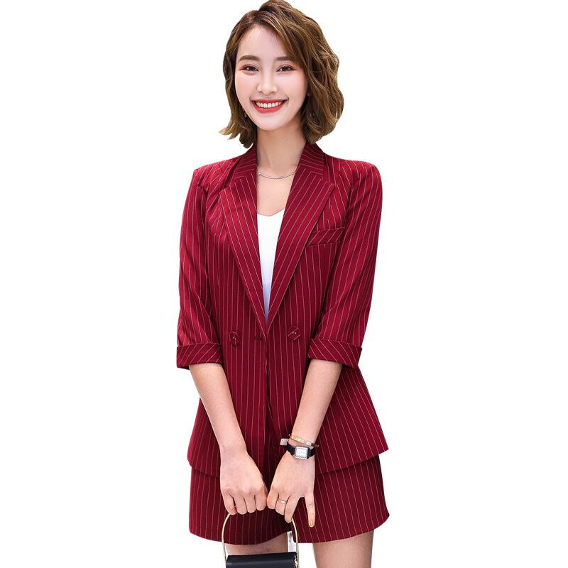【新作】【送料無料】 2021年春の新しい帝国の姉妹の女神ファンヤンは薄い赤い縞模様の小さなスーツツーピースファッションスーツの女性に見えます-アリババ レッド スプリング 春物 ストライプ 12b330949596693