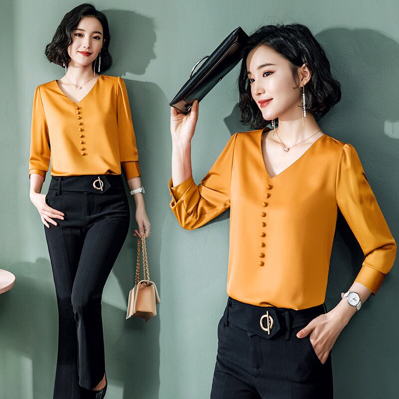 【新作】【送料無料】 プロのシャツの女性2021年春と夏の新しい模造シルクルーズトップビジネス女性の長袖ウエスタンスタイルのシャツシフォン-アリババ ロング スプリング 春物 サマー 夏物 12b338001028911