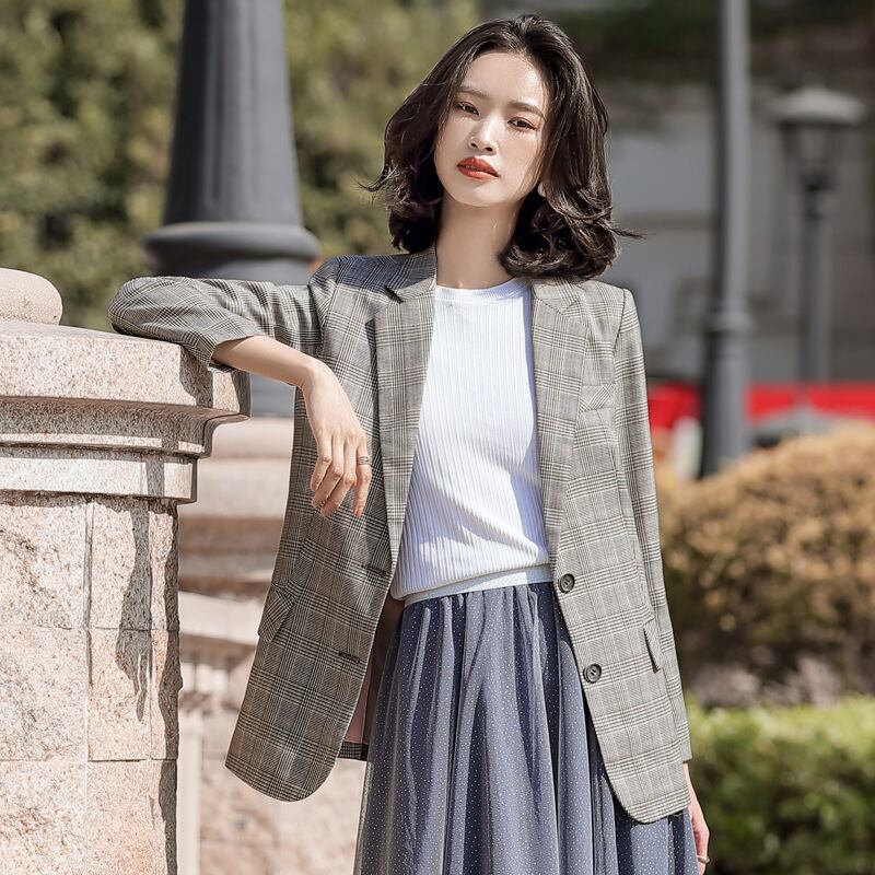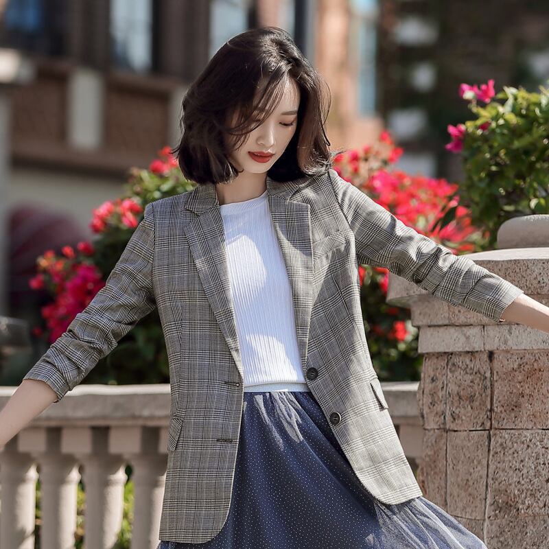 【新作】【送料無料】 リアルの気質チェック柄レトロスモールスーツジャケットレディースファッションオールマッチスーツジャケット2020ニュージャケット-アリババ 12b279007721448