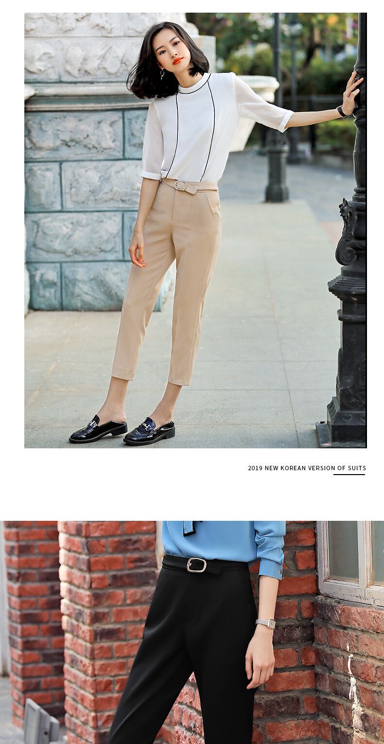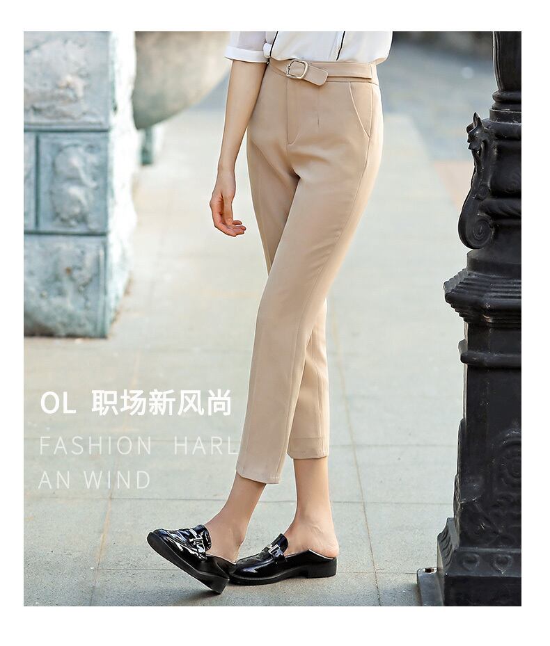【新作】【送料無料】 ベルト付きシンプルスーツパンツストレートパンツ春と秋のレディースパンツスリムで薄いミッドウエストクロップドパンツ-アリババ スプリング 春物 オータム 秋物 ハーネス 12b322277833748