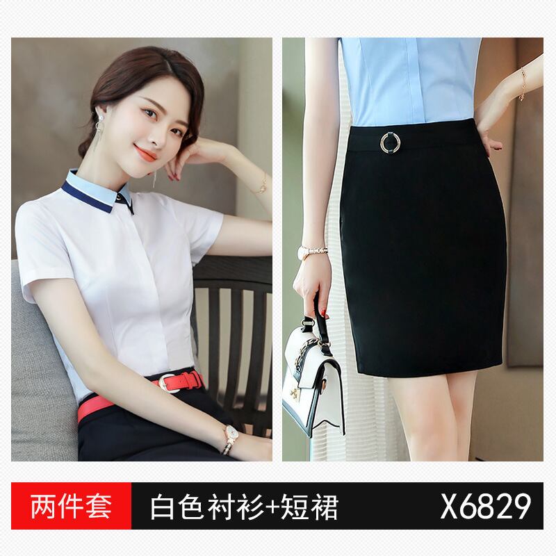 【新作】【送料無料】 ホテル作業服サマードレス女性フードウェイターシャツ半袖ビジネススーツフロント作業服スチュワーデスユニム-アリババ 夏物 12b347566081393