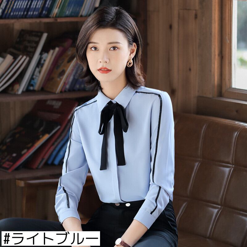 【新作】【送料無料】 本物の秋冬ラペルボウタイシャツ女性2020新しいカジュアルで用途の広い気質プロフェッショナルウェアプラスサイズシャツ-アリババ リボン 大きめサイズ オータム 秋物 ウィンター 冬物 12b250413574076