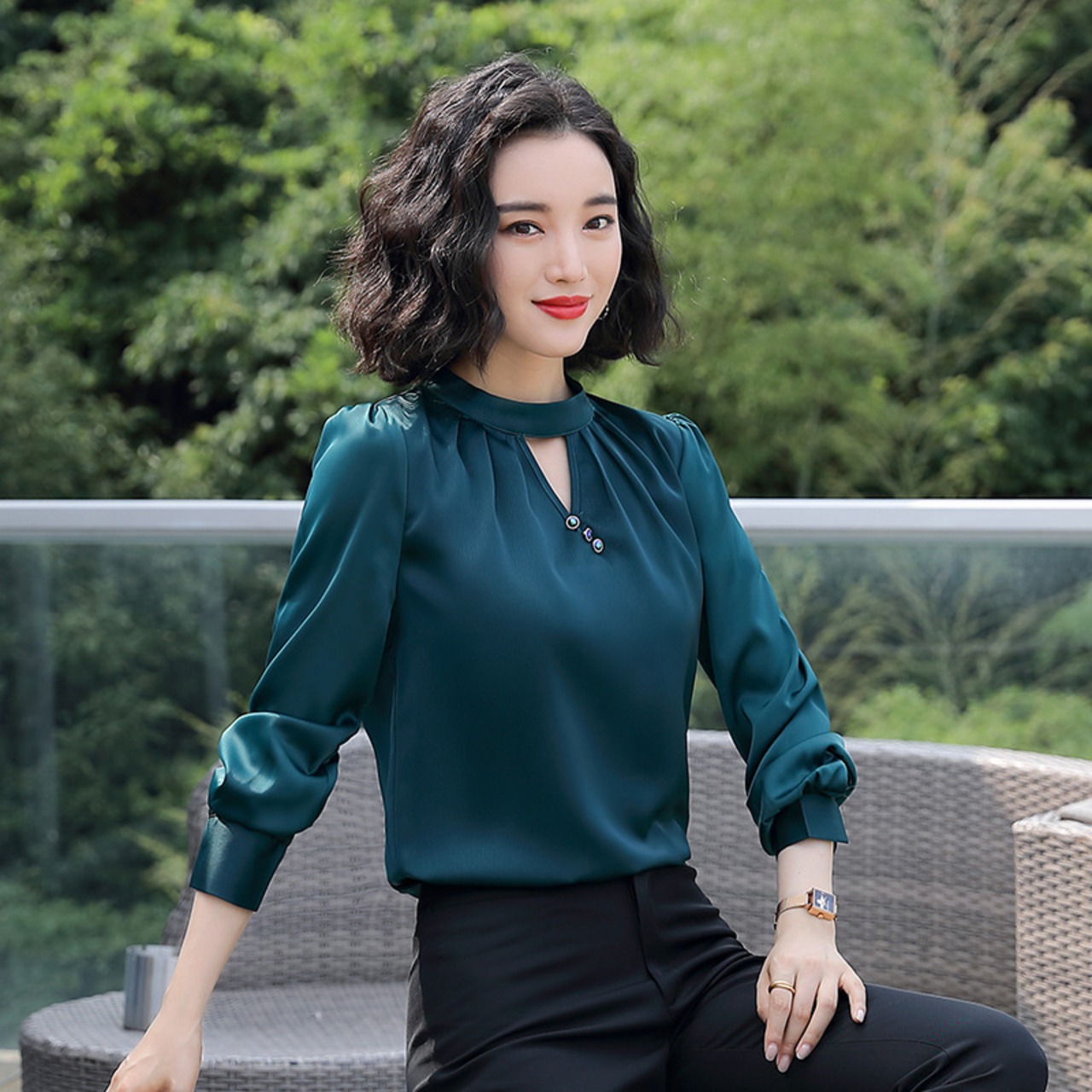 【新作】【送料無料】 Realsラージサイズルーズカジュアルオールマッチシャツデザインセンスニッチアンチリンクルアセテートサテンシャツレディース長袖シンスタイル-アリババ ロング 大きめサイズ 12b246978839283