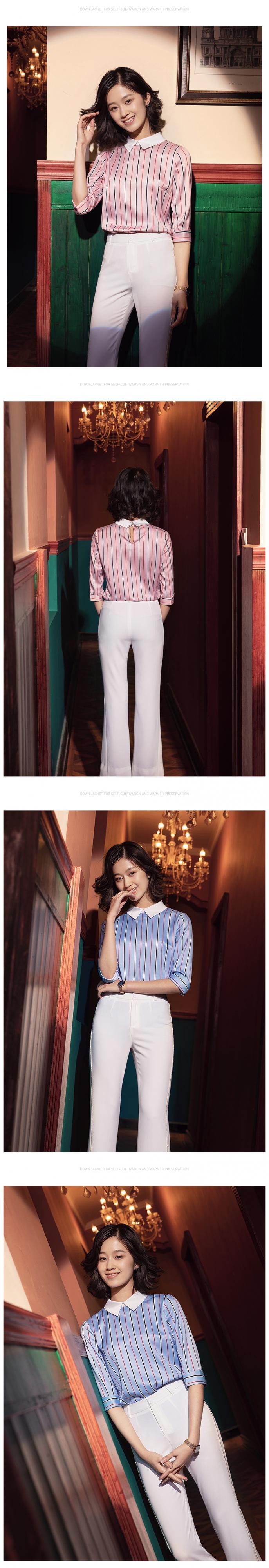 【新作】【送料無料】 ビジネスウェアストライプシャツ2021春の新しいシフォンシャツ女性のミッドスリーブファッション非常に妖精のブラウスeignスタイルのシャツ-アリババ スプリング 春物 12b398834571598