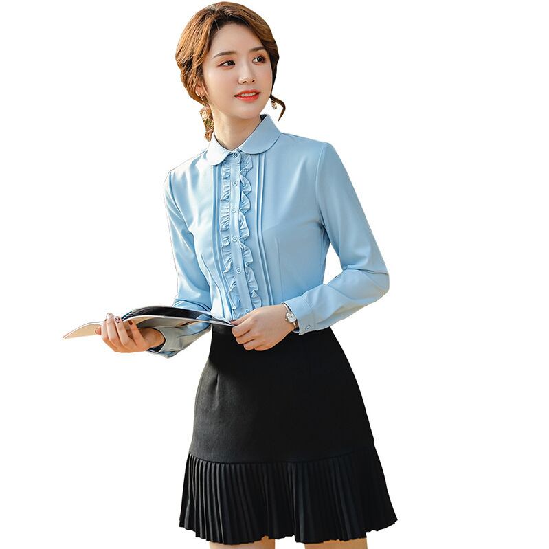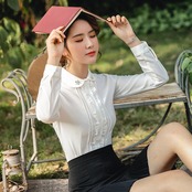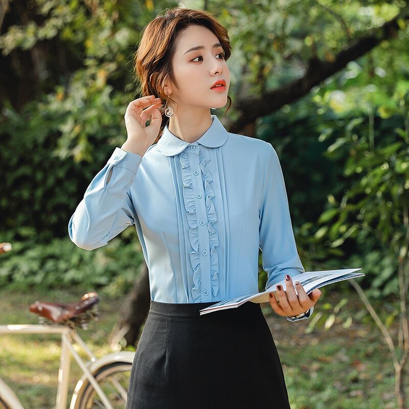 【新作】【送料無料】 2021年春の新しいプロシャツ女性長袖人形の襟ファッション通勤学生ニッチレースシャツ-アリババ ロング スプリング 春物 12b335290278550