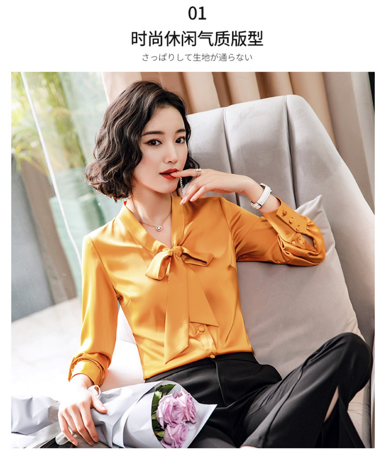【新作】【送料無料】 プロのサテンシャツ女性長袖2021年春夏新作レースアップ蝶結びブラウス模造シルクウエスタンスタイルシャツOL ロング リボン スプリング 春物 サマー 夏物 12b345465077051