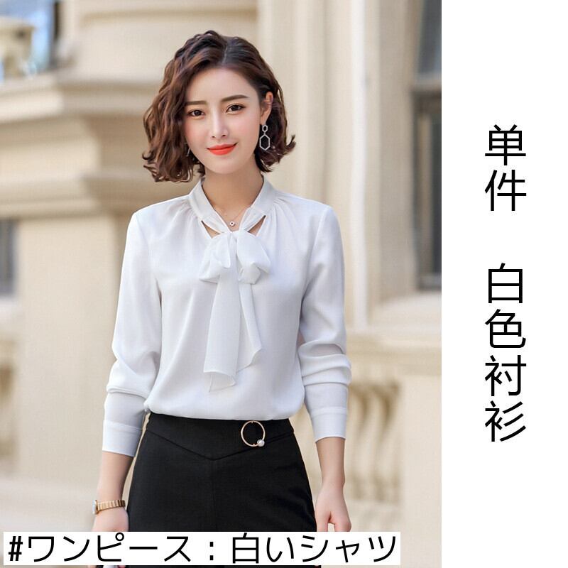 【新作】【送料無料】 春の女性2020新しいシャツプロのシャツ長袖トップスファッション弓白気質作業服女性-アリババ ロング ホワイト リボン スプリング 春物 12b371619619126