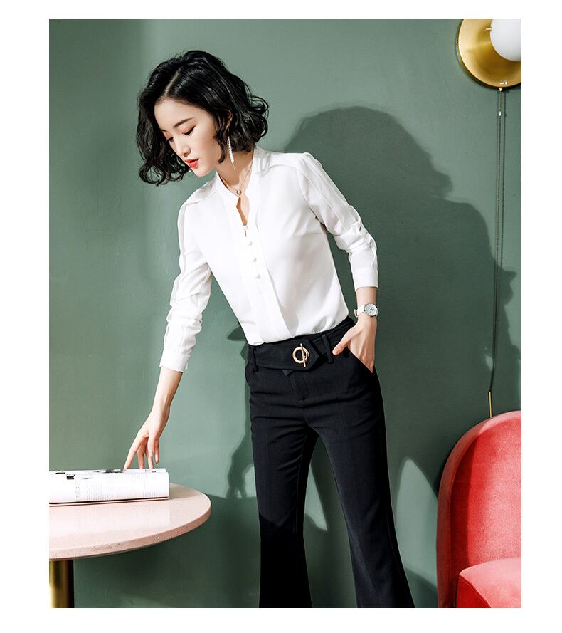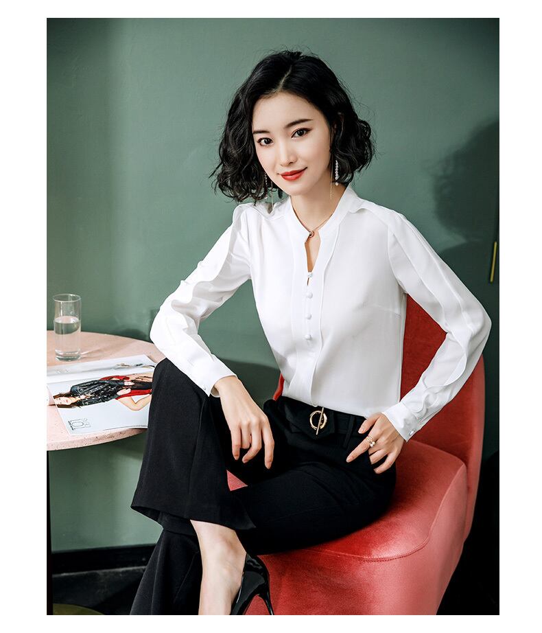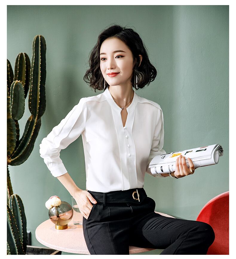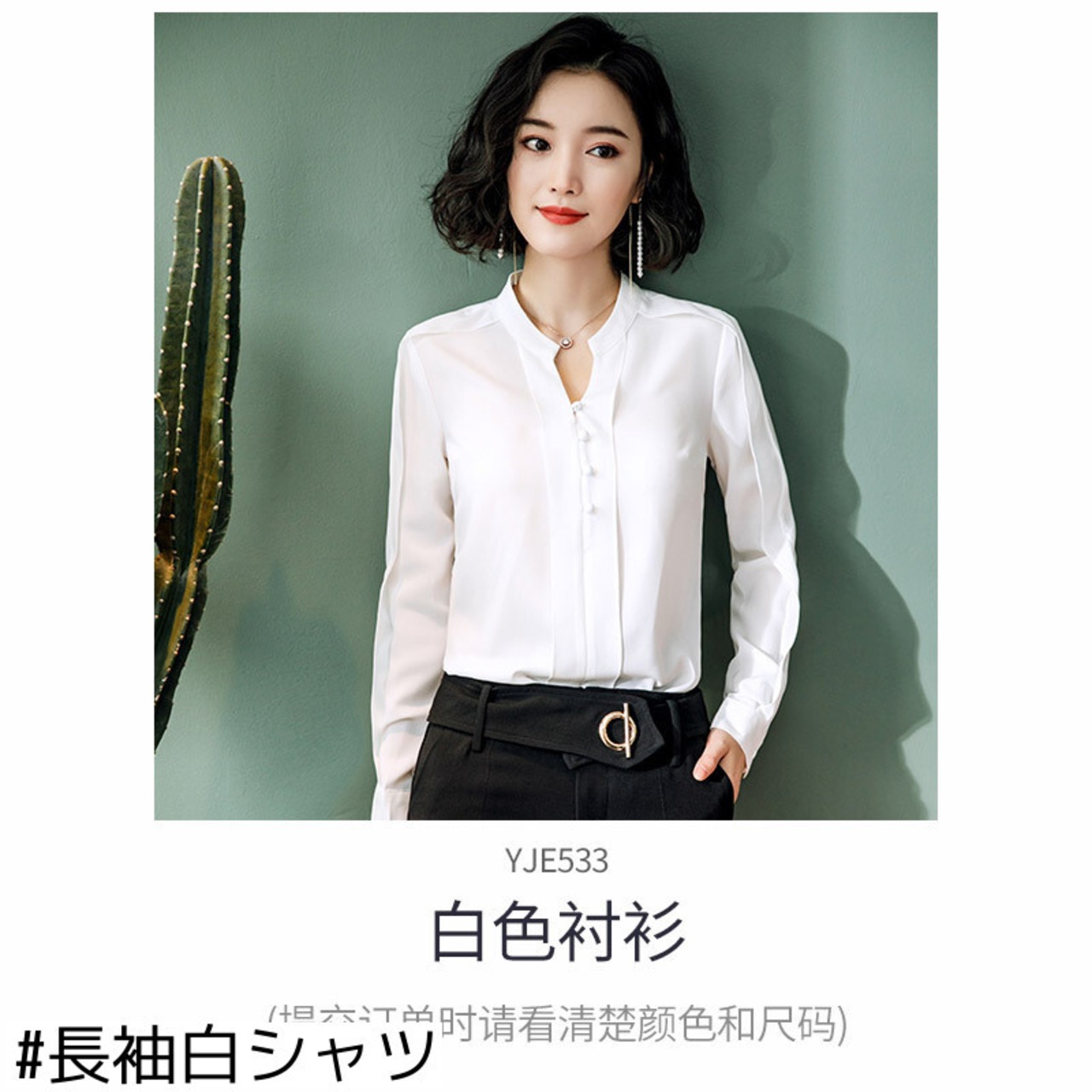 【新作】【送料無料】 白いシャツの女性の長袖2021年春と夏の新しいシフォンプロフェッショナルシャツの女性のビジネスOLトップルーズオーバーオール-アリババ ロング ホワイト スプリング 春物 サマー 夏物 12b348670043611