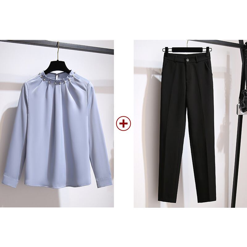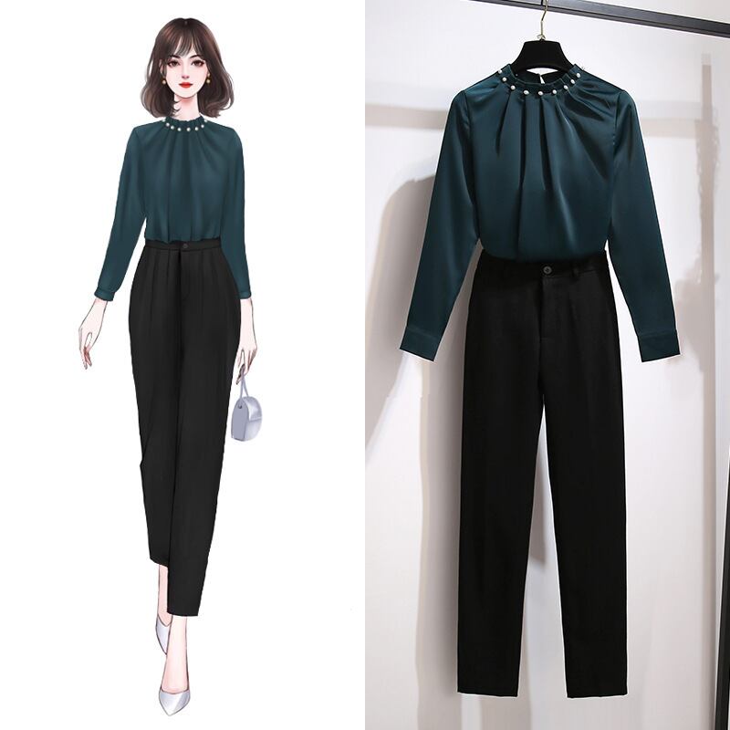 色:グレーブルー,濃い緑色,ブルーグレーシャツ+ブラックパンツB03,ダークグリーンのシャツ+黒のパンツB03,黒パンツB03
