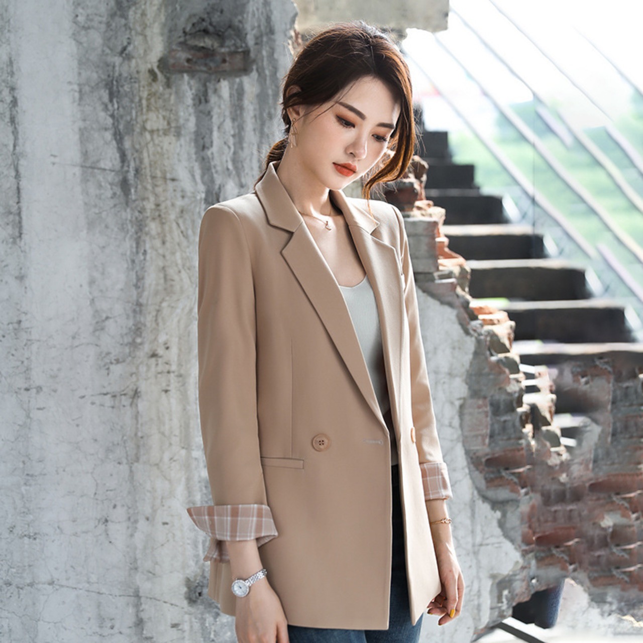 【新作】【送料無料】 大きいサイズの緩い気質のプロのスーツジャケットトレンド2020新しい小さいスーツジャケット女性の本当の秋と冬のバージョン-アリババ 大きめサイズ オータム 秋物 ウィンター 冬物 12b229331306394