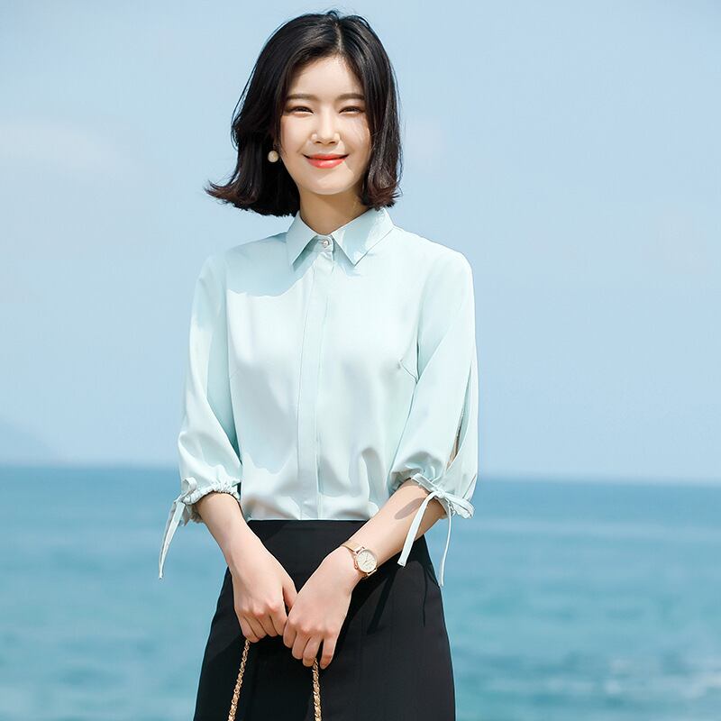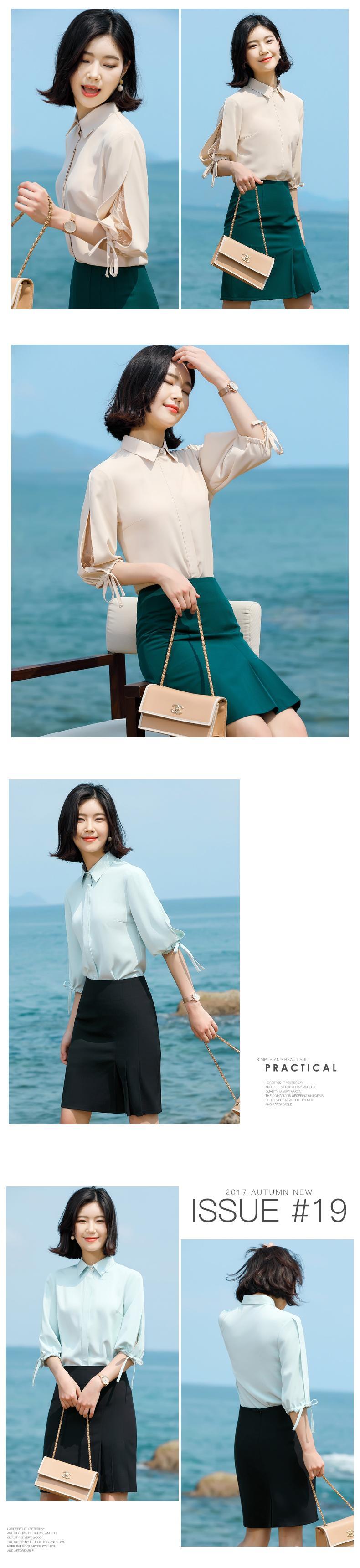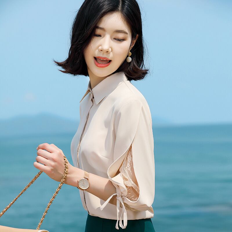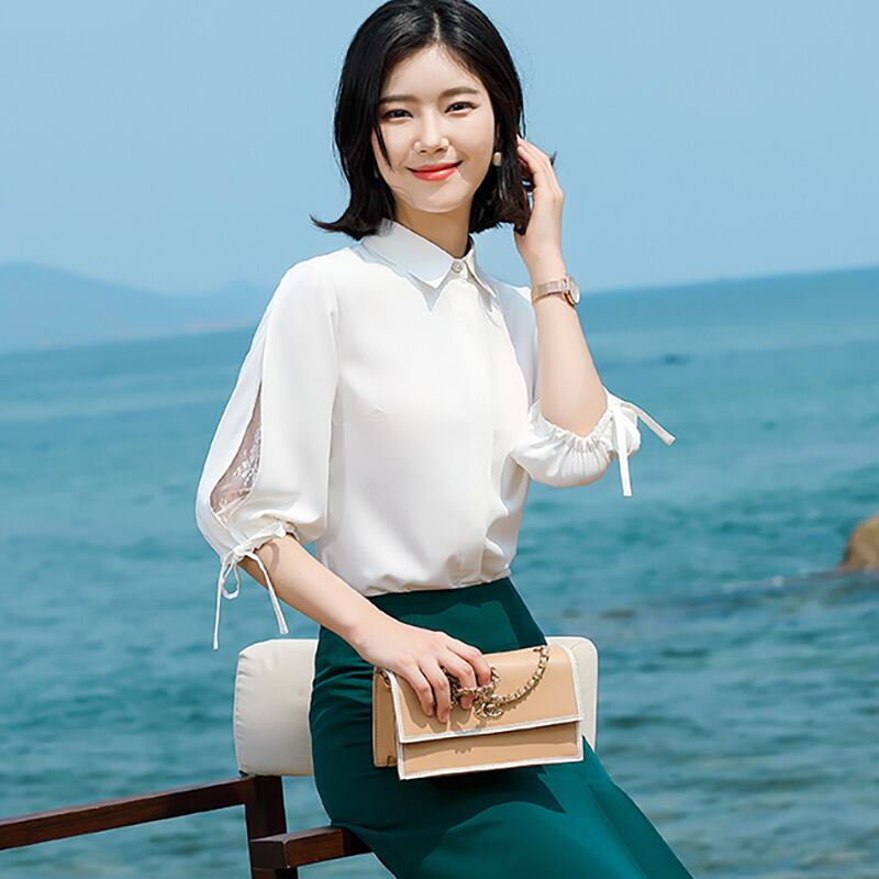 【新作】【送料無料】 Temperamentシャツ2021夏の新しいファッションフェアリーレースミッドスリーブOLビジネスシャツ無地シフォントップ-アリババ サマー 夏物 ソリッドカラー 12b385835016369
