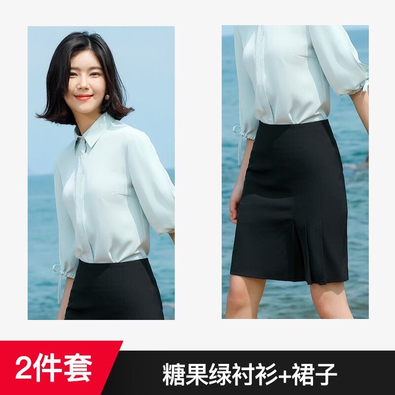 色:白のシャツ,キャンディーグリーンシャツ,アプリコットシャツ,白いシャツ+322の緑のスカート,キャンディーグリーンシャツ+322ブラックスカート,アプリコットシャツ+322グリーンスカート