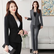 【新作】【送料無料】 2019新しい秋と冬のファッションビジネスウェアの女性のスーツスーツのインタビューマルスーツ気質店の販売の仕事-アリババ オータム 秋物 ウィンター 冬物 12b349511424393