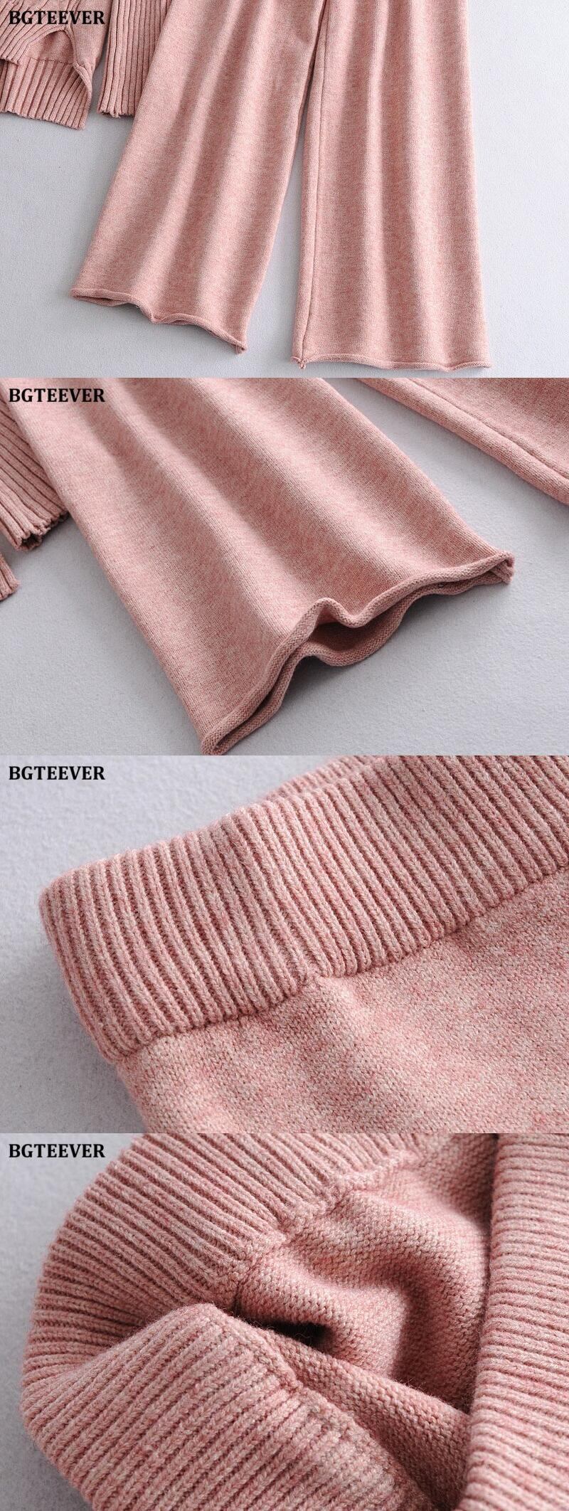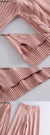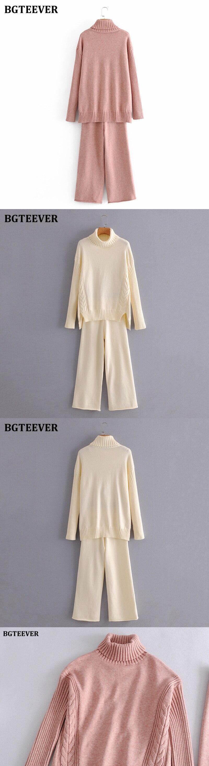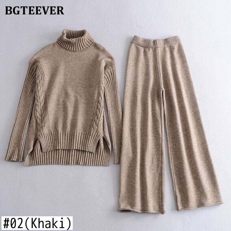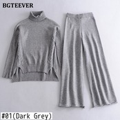 【新作】【送料無料】 BGTEEVERシックン2ピースニットセットレディースタートルネックサイドスプリットプルオーバー&ワイドレッグセーターパンツウィンターセーターセット 冬物 ワイドパンツ 12b120953799708