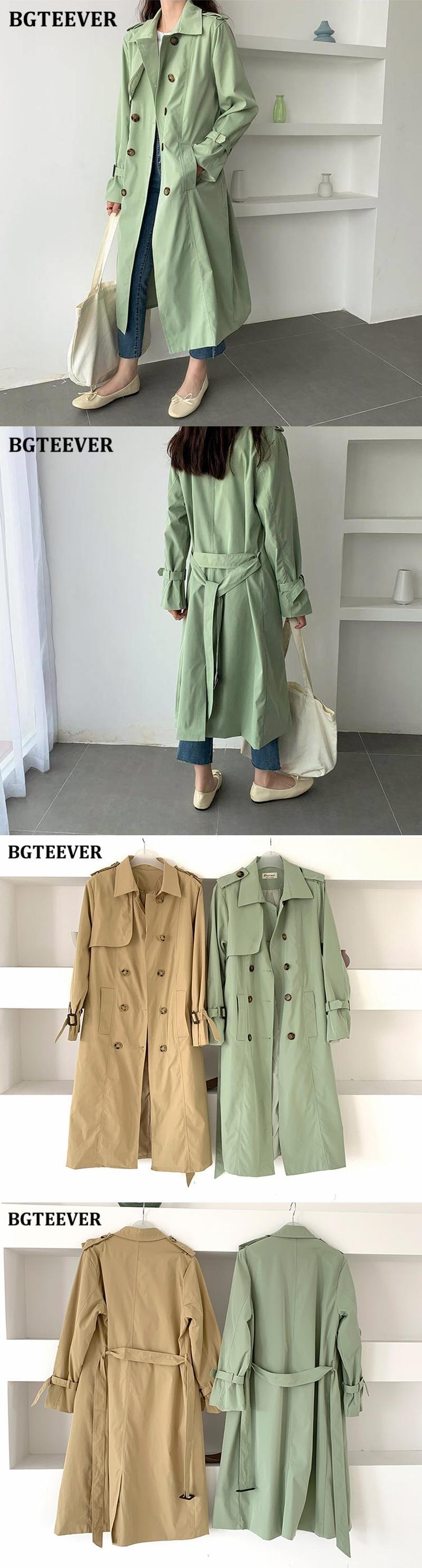 【新作】【送料無料】 BGTEEVERシックミントグリーンボタンレディーストレンチコートサッシルーズウインドブレーカーアウター2020秋冬クリックオーバーコート オータム 秋物 ウィンター 冬物 12b112799421064