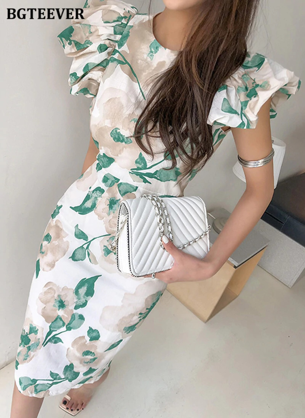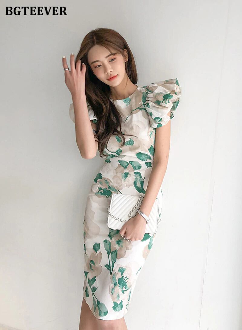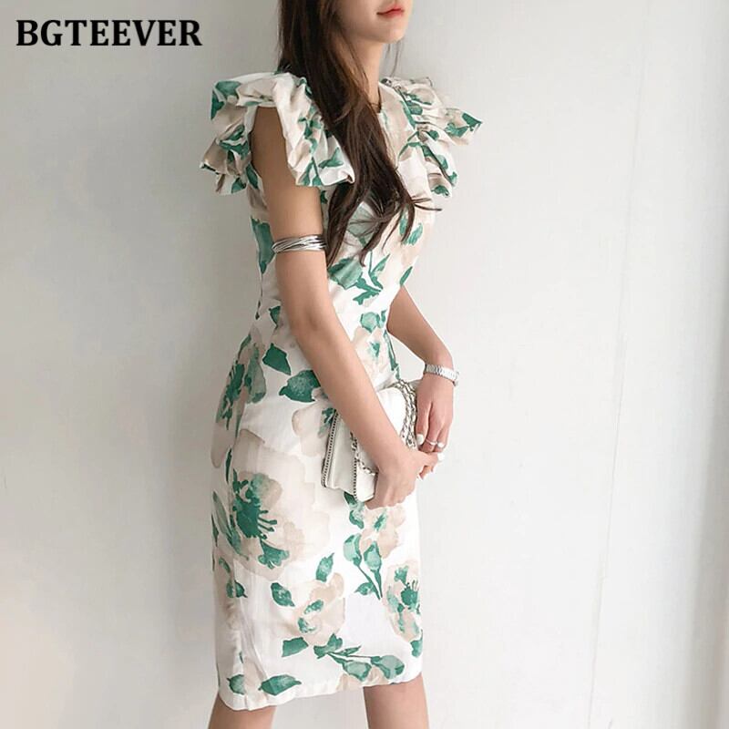 【新作】【送料無料】 BGTEEVEROネックフローラルプリントレディースパッケージヒップドレスサマーバタフライスリーブスリムOLドレス2020スキニーVestidos 夏物 花柄 12b113041815097
