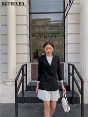 【新作】【送料無料】 BGTEEVERワンボタンポケットレディースブレザー長袖ヒョウパッチワークスーツジャケットオフィススリムウエストアウター2020 ロング 会社 学校 通勤や通学にも 12b180473922701