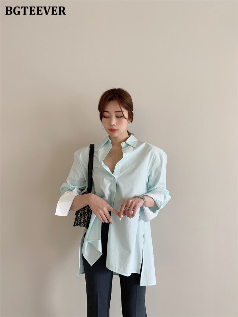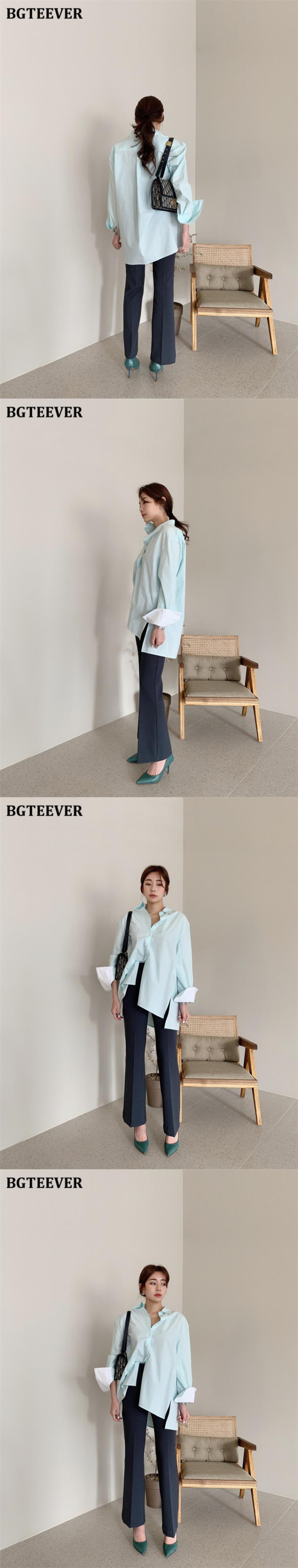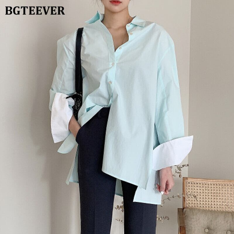 【新作】【送料無料】 BGTEEVERシックな特大スプリットレディースシャツブラウス長袖パッチワーク不規則なミントグリーンシャツ2020夏秋 ロング サマー 夏物 オータム 秋物 12b178634874755