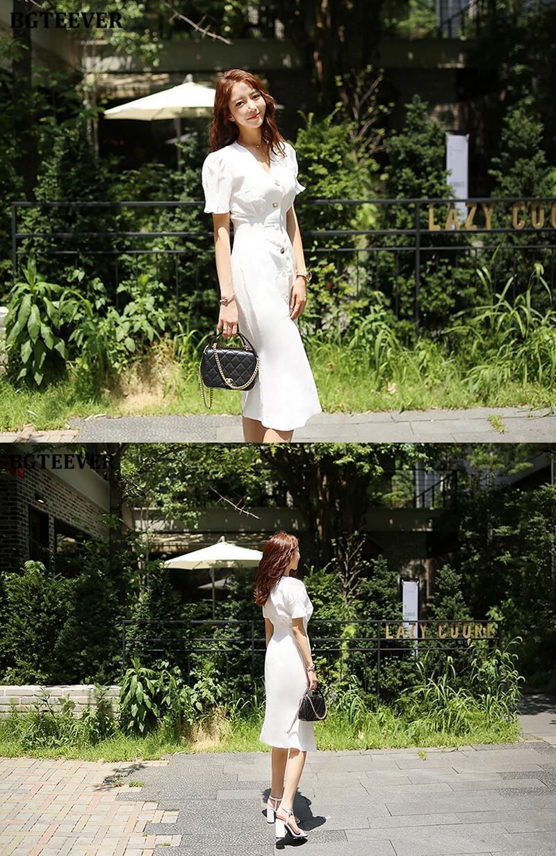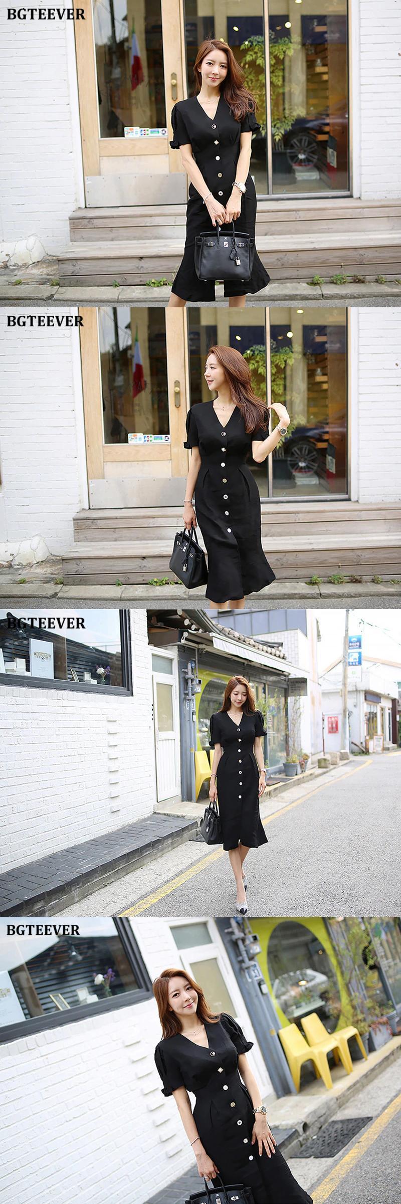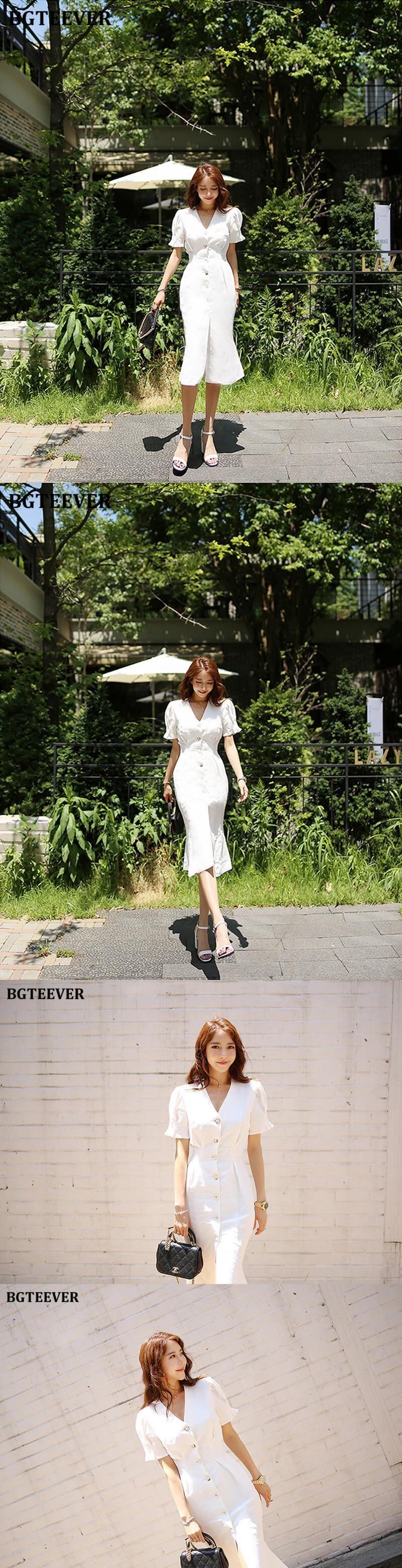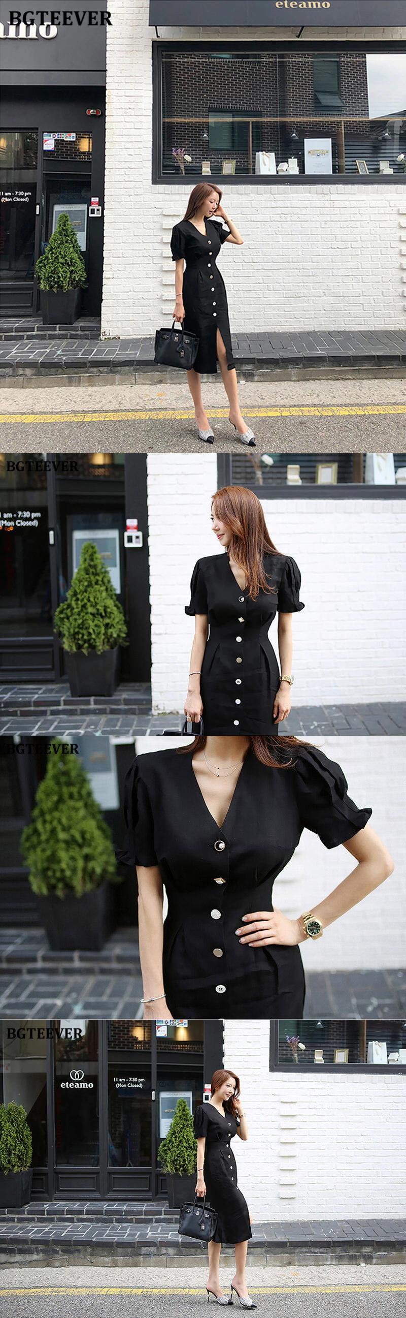 【新作】【送料無料】 BGTEEVERオフィスミディドレスVネックシングルブレストレディースドレスサマー半袖スリムウエスト ショート ハーフスリーブ 夏物 会社 学校 通勤や通学にも 12b1747756403