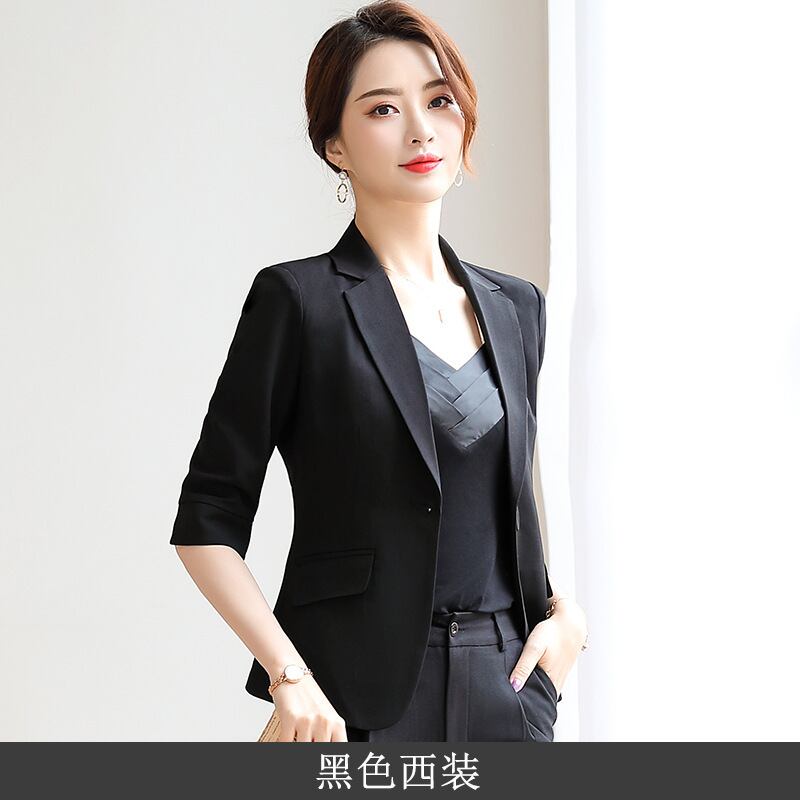【新作】【送料無料】 黒のミッドスリーブスモールスーツレディースサマープロフェッショナルウェア2020新しい春と秋の七分袖スモールフレグランススタイルマルジャケット-アリババ ブラック スプリング 春物 夏物 オータム 秋物 12b32075615968