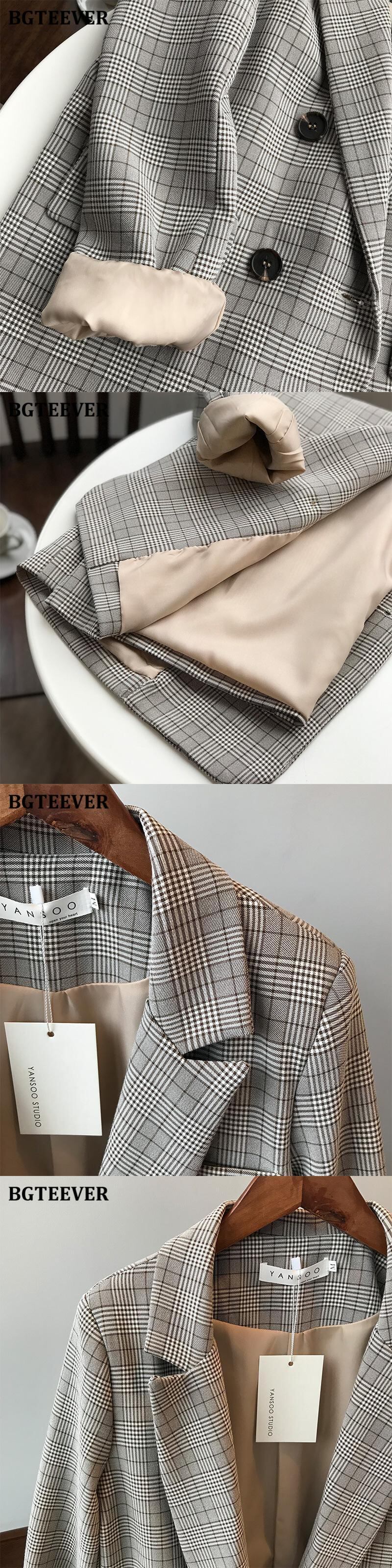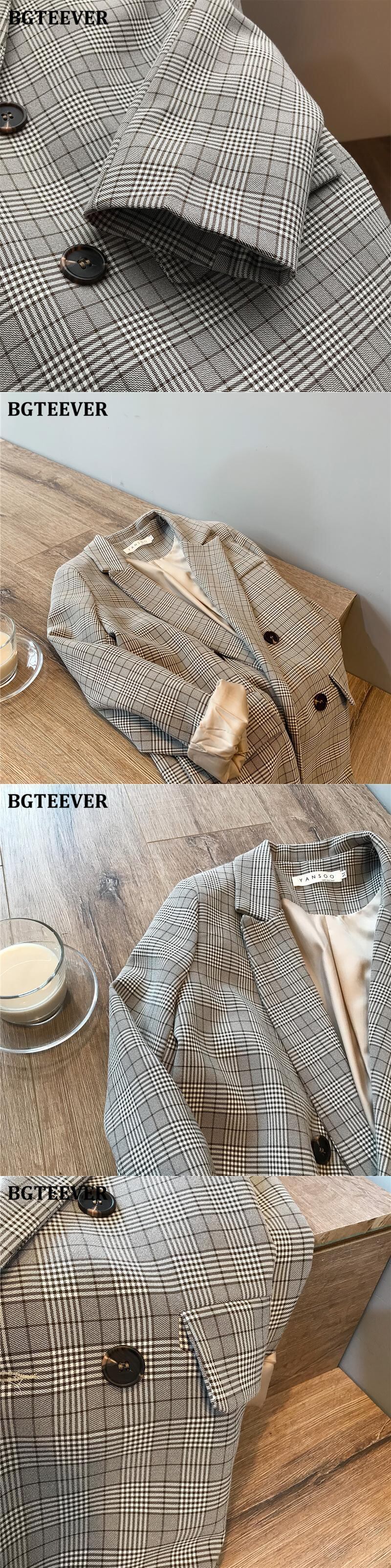 【新作】【送料無料】 BGTEEVERヴィンテージルーズダブルブレストレディースチェック柄ブレザーノッチカラー長袖スーツジャケット2020秋のアウタートップス ロング オータム 秋物 ビンテージ 12b162547515912