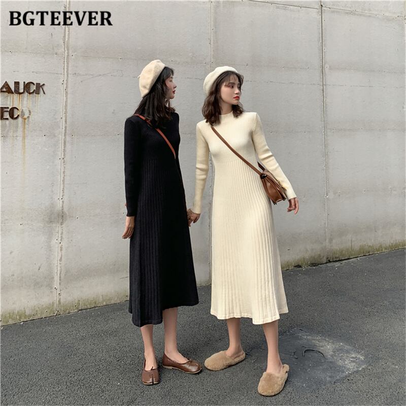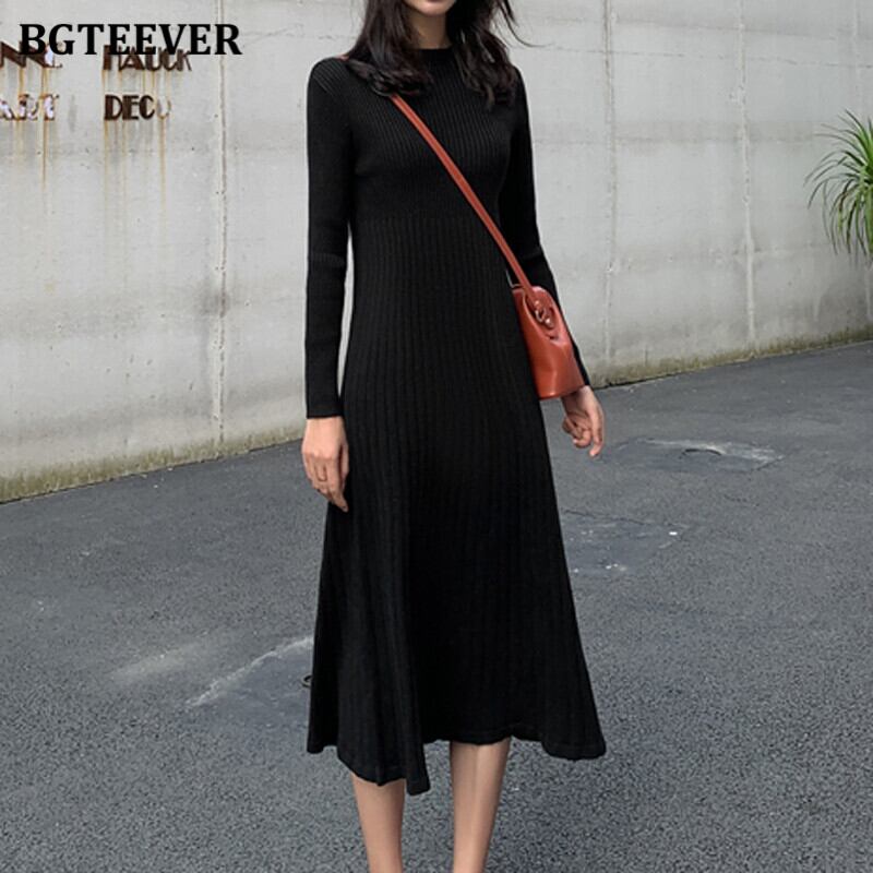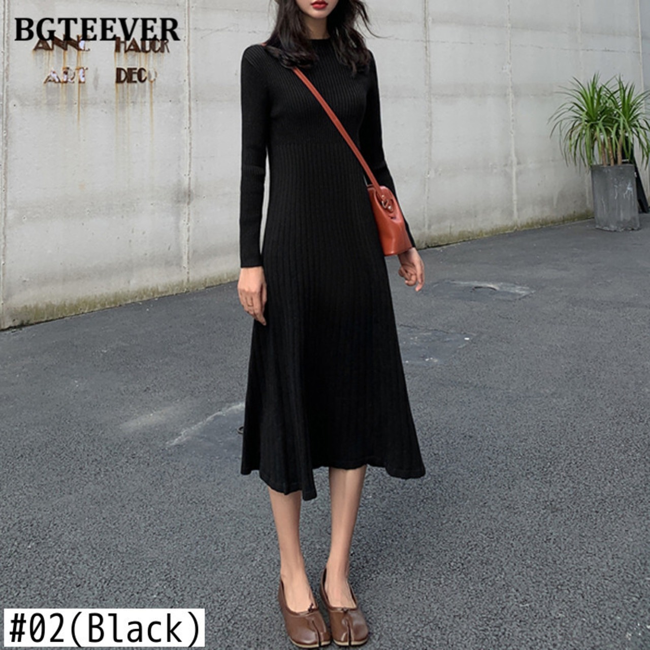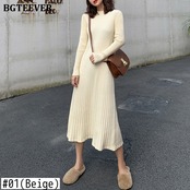 【新作】【送料無料】 BGTEEVERAラインOネックニットセータードレス女性ベーシックルーズソリッドドレス長袖ニットウェア ロング ソリッドカラー 12b130382026617