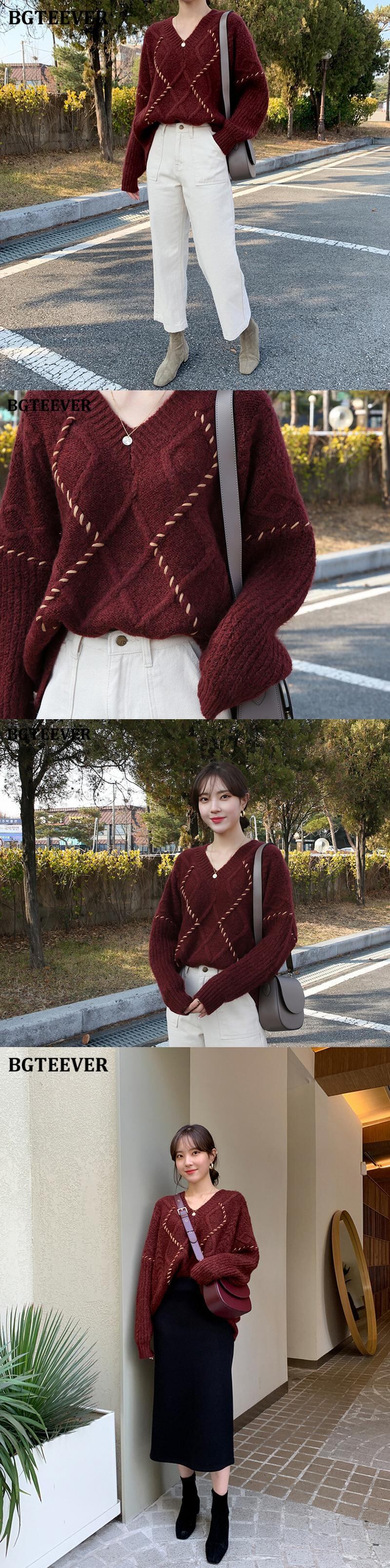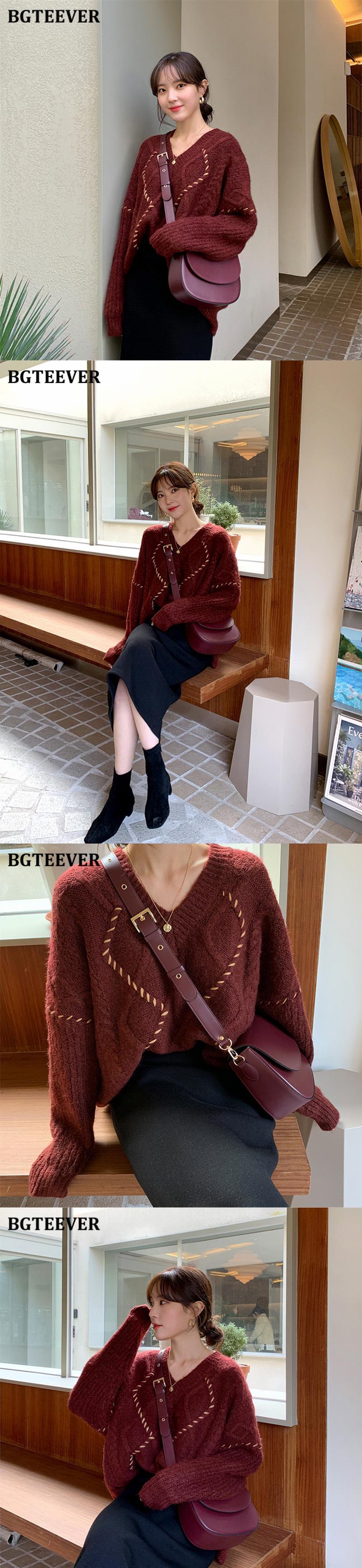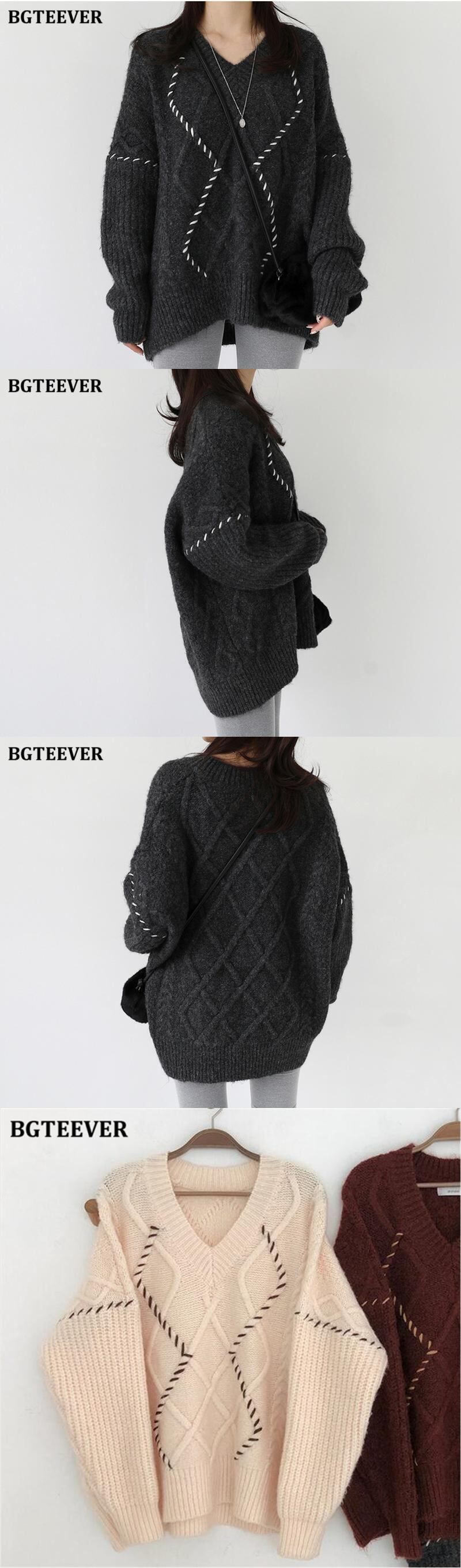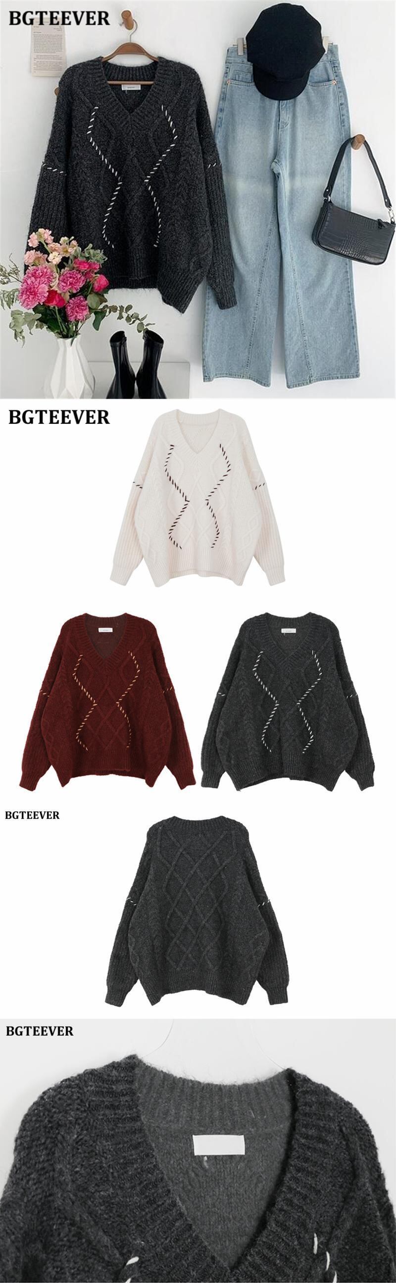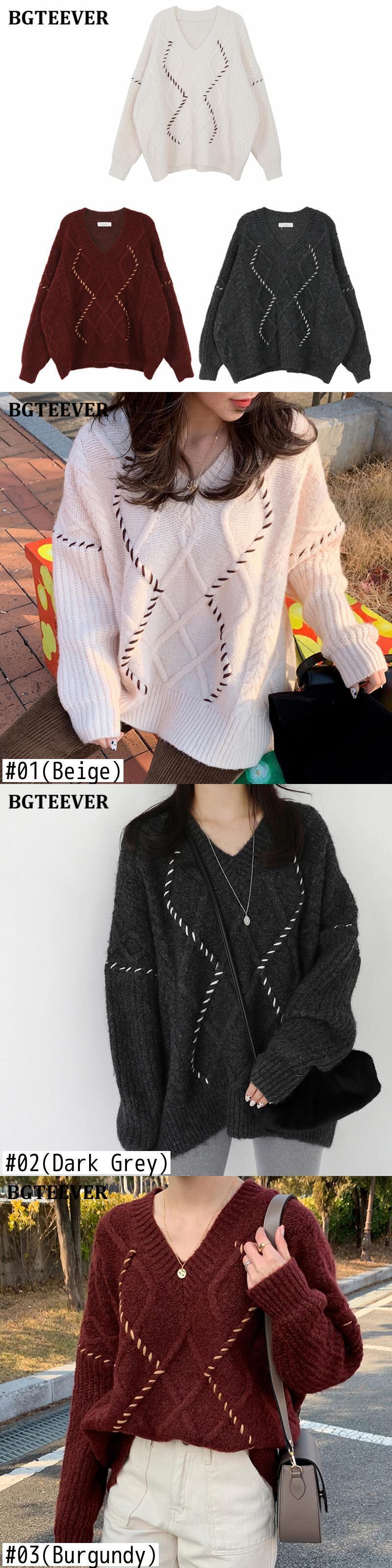 【新作】【送料無料】 BGTEEVERヴィンテージツイストセータージャンパーレディース2020秋冬Vネック厚手ウォームルーズニットトップスプルオーバー オータム 秋物 ウィンター 冬物 ビンテージ 12b157053816871