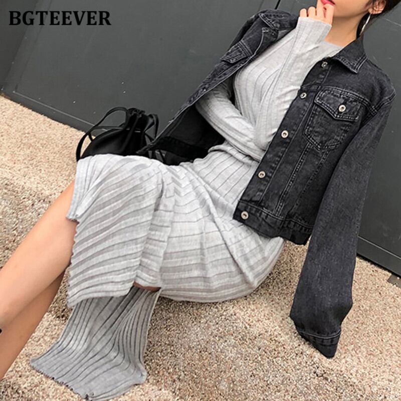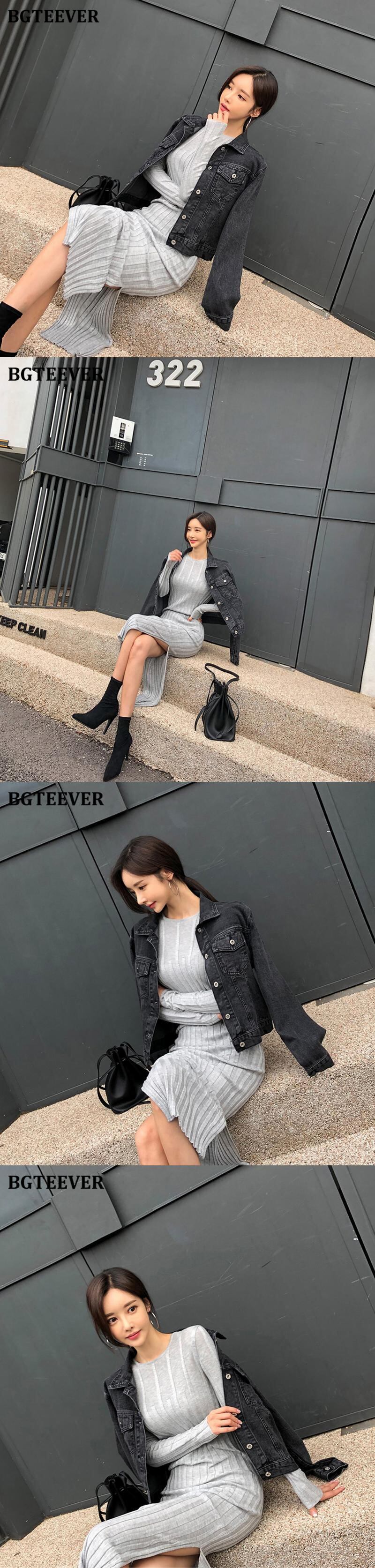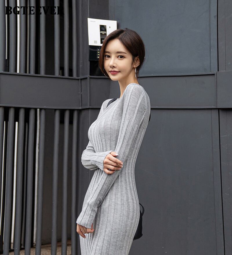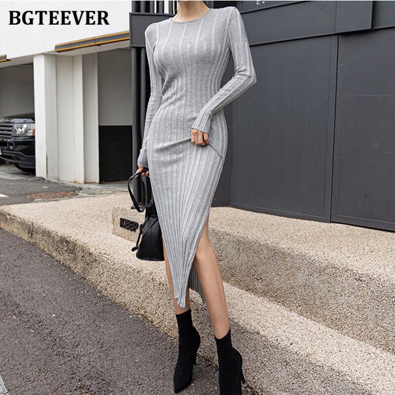 【新作】【送料無料】 BGTEEVER秋のOネックスリムレディースニットボディコンドレス2020長袖サイドスプリットセーターロングドレススキニー オータム 秋物 12b122186838413