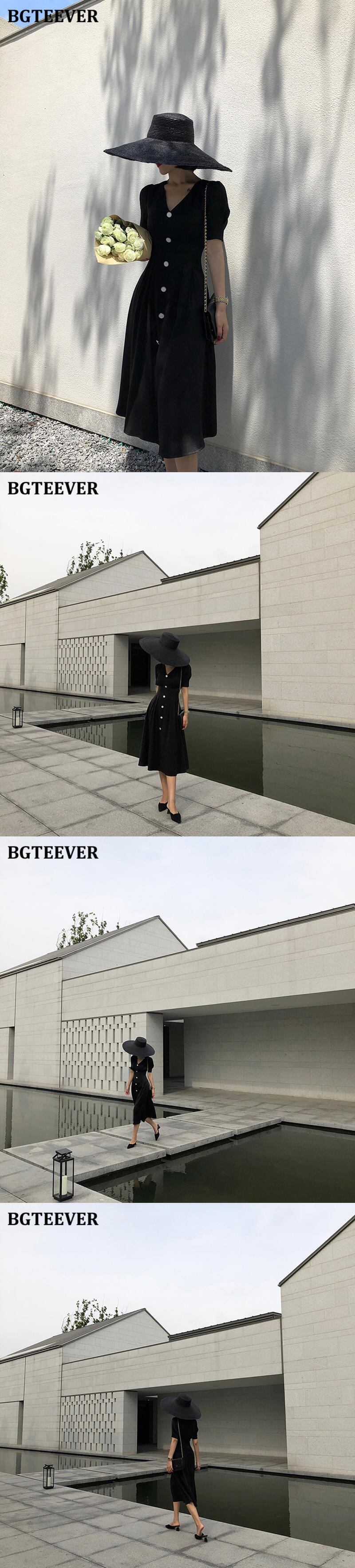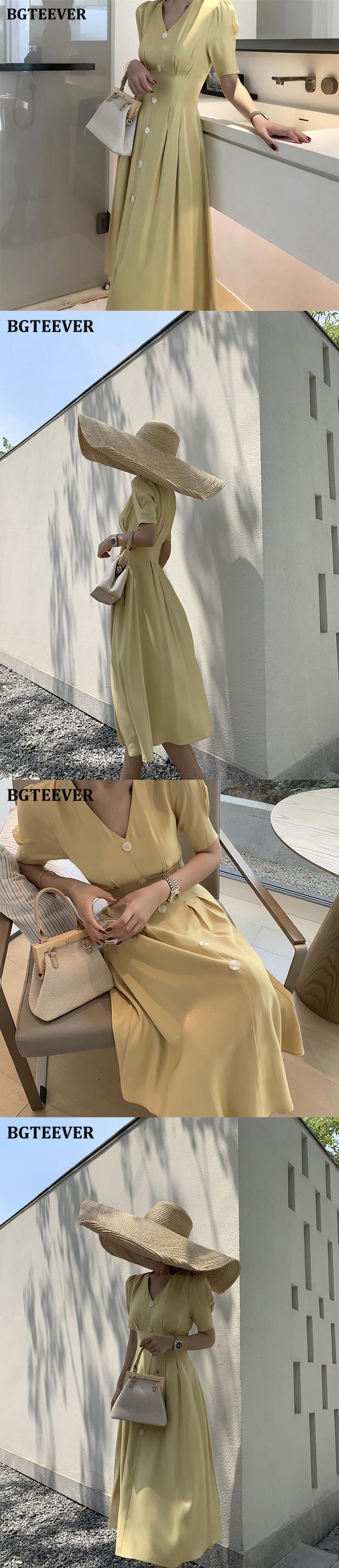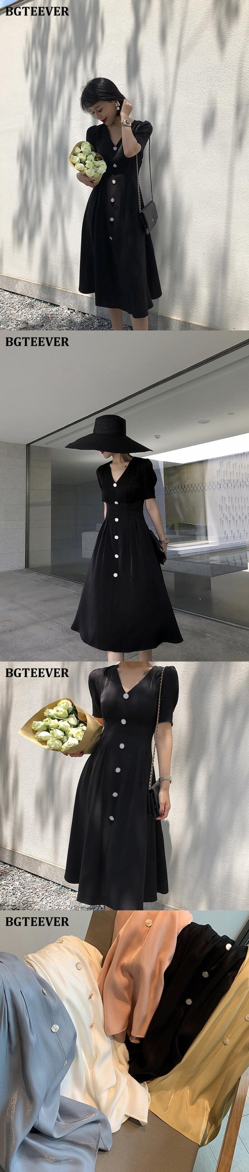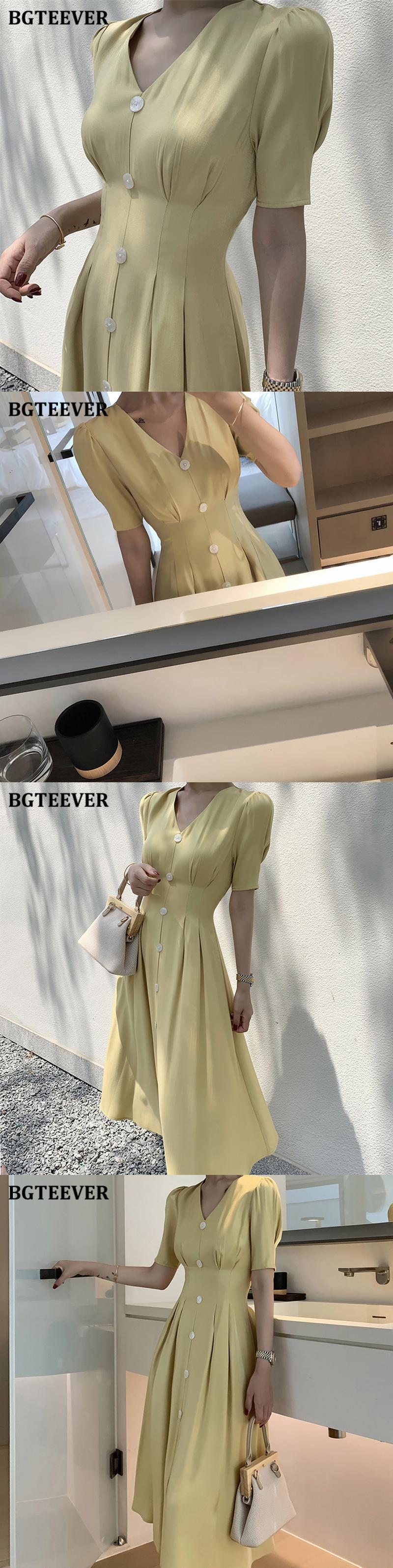 【新作】【送料無料】 BGTEEVERVネックシングルブレストレディースドレス半袖Aライン年夏スリムウエストドレス ショート ハーフスリーブ サマー 夏物 12b174140488102