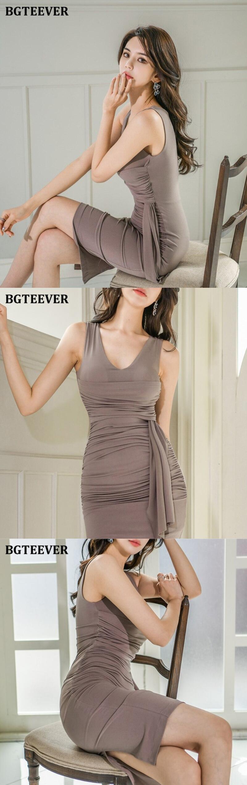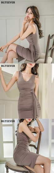 【新作】【送料無料】 BGTEEVERVネックノースリーブソリッドドレスレディースサマーパッケージヒップビハインドスプリットボディコンスキニードレス2020 夏物 ソリッドカラー 12b172335724718