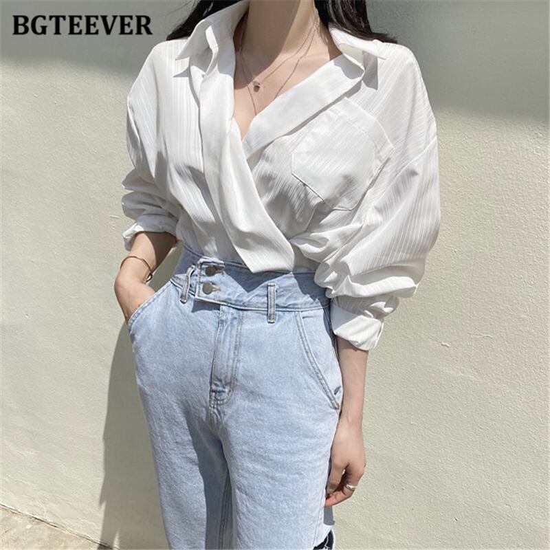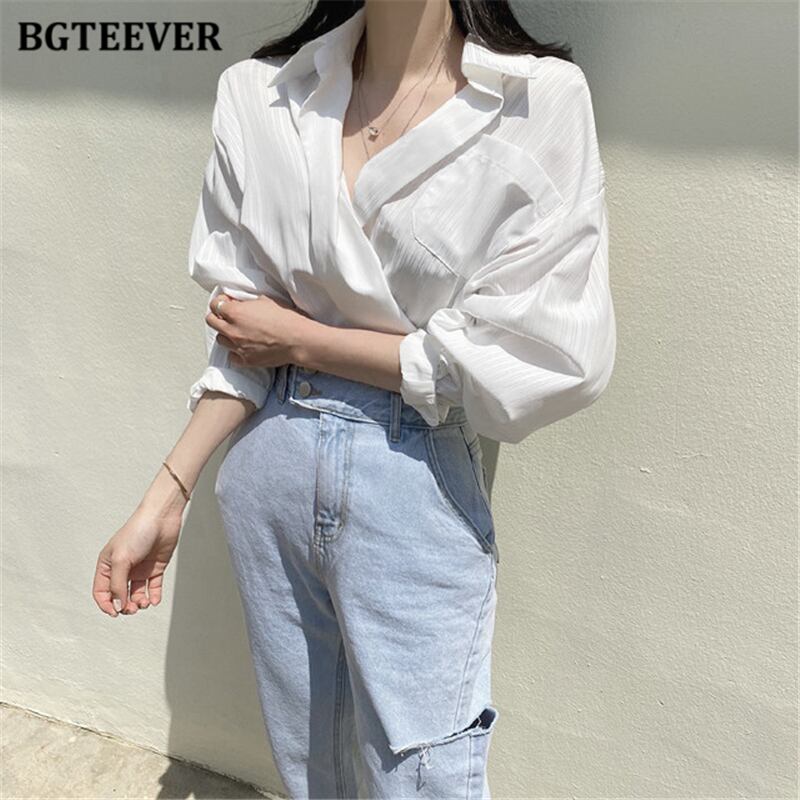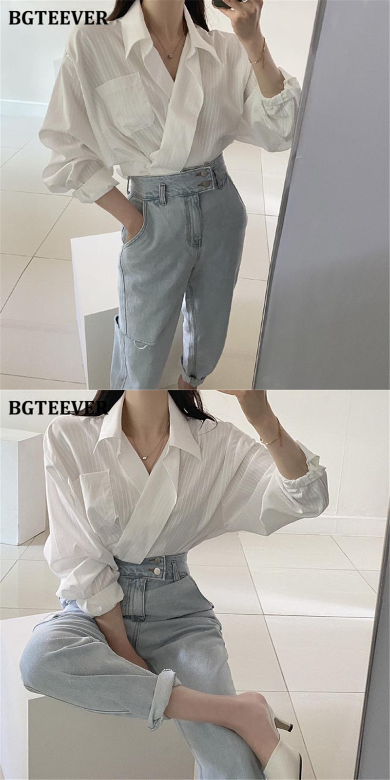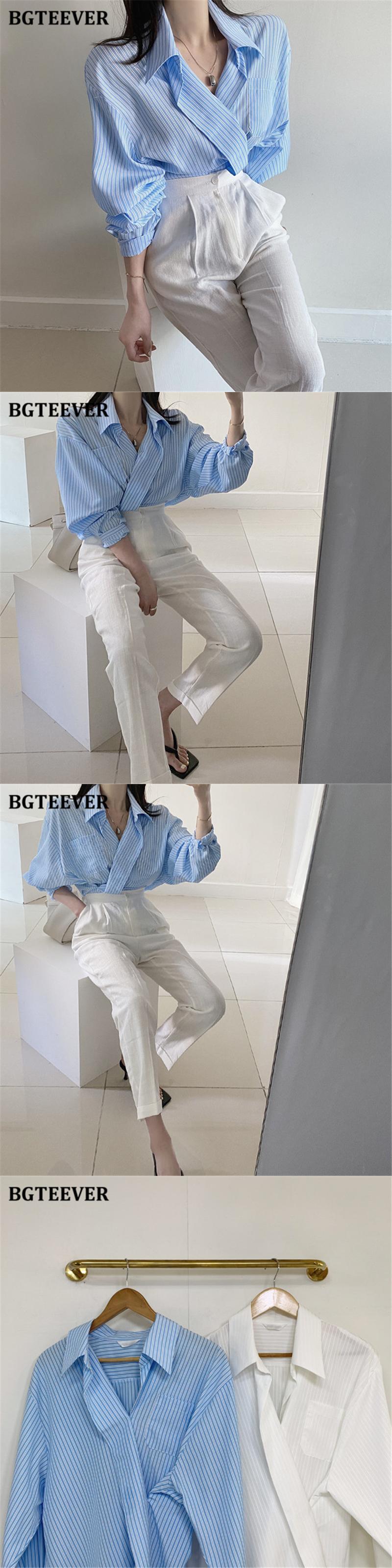 【新作】【送料無料】 BGTEEVERシックなポケットストライプの女性のシャツ夏秋Vネックルーズブラウス2020トップス サマー 夏物 オータム 秋物 12b111518385314