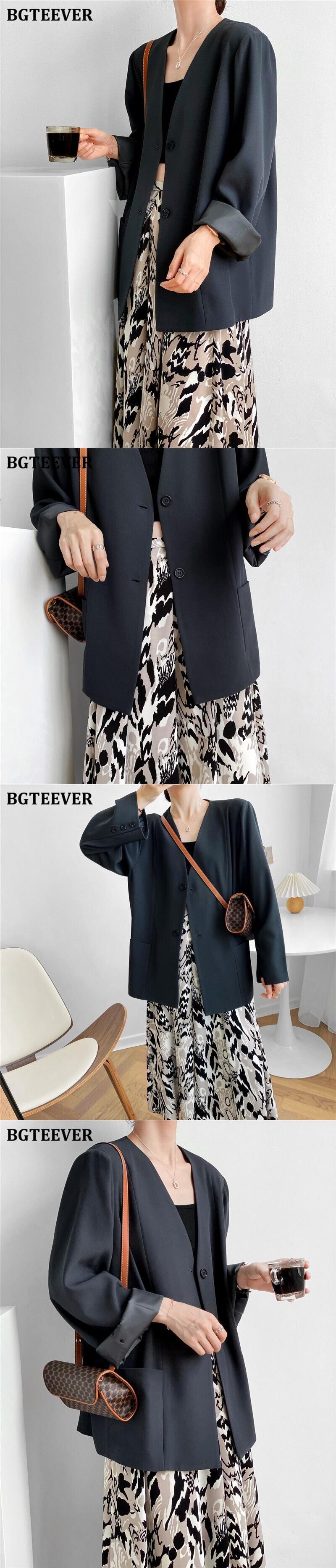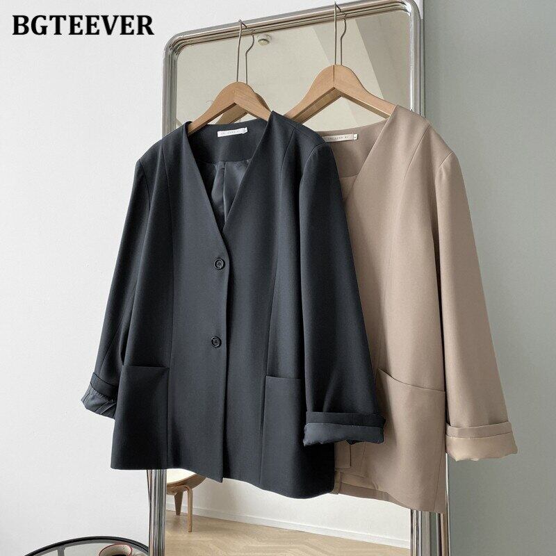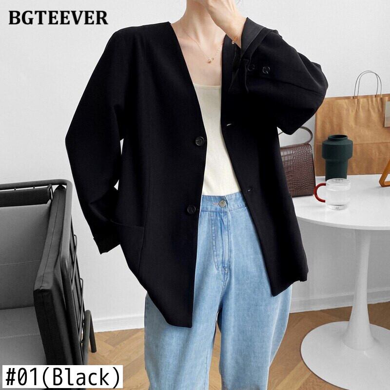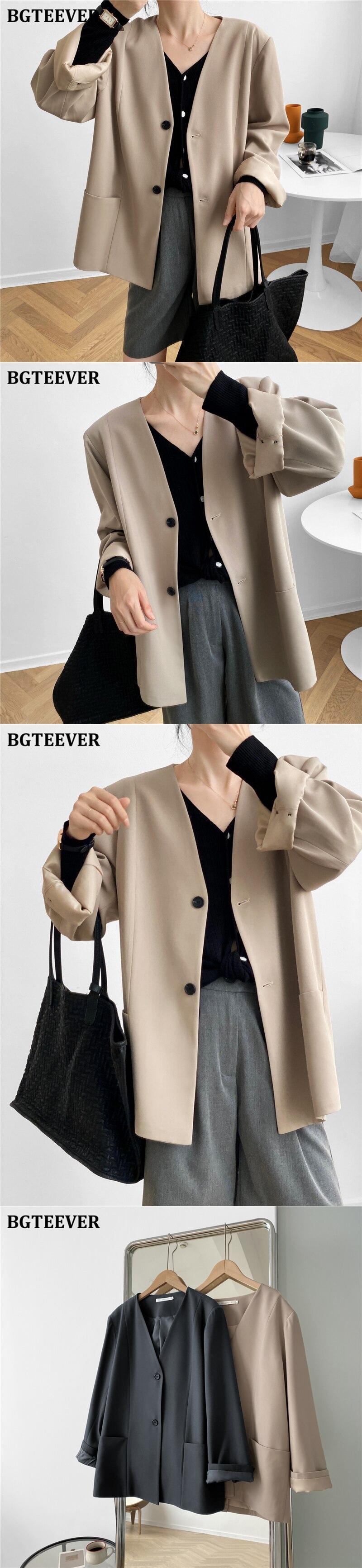 【新作】【送料無料】 BGTEEVER秋Vネックブレザー長袖ルーズポケットスーツジャケットレディースアウタートップス2020 ロング オータム 秋物 12b137636494408