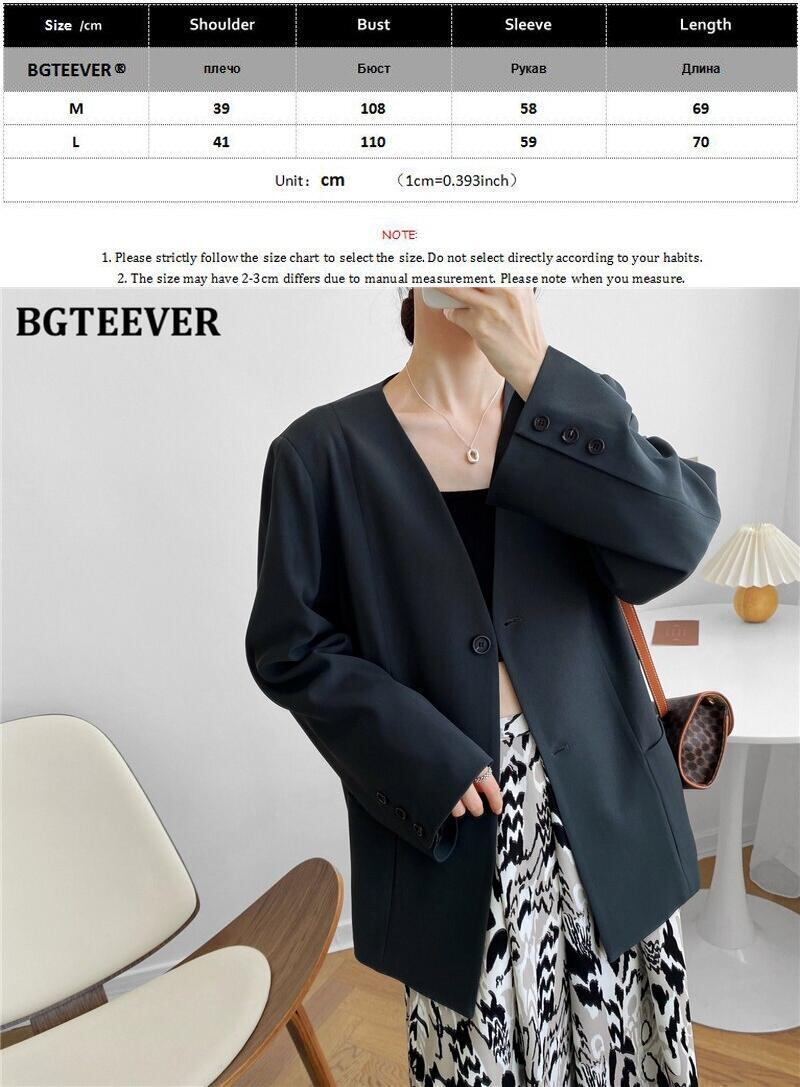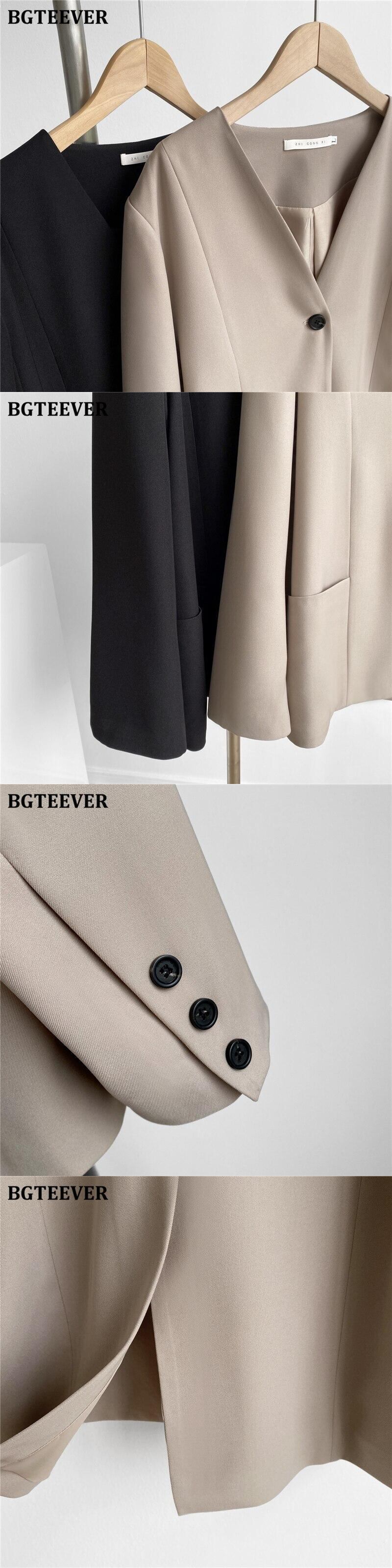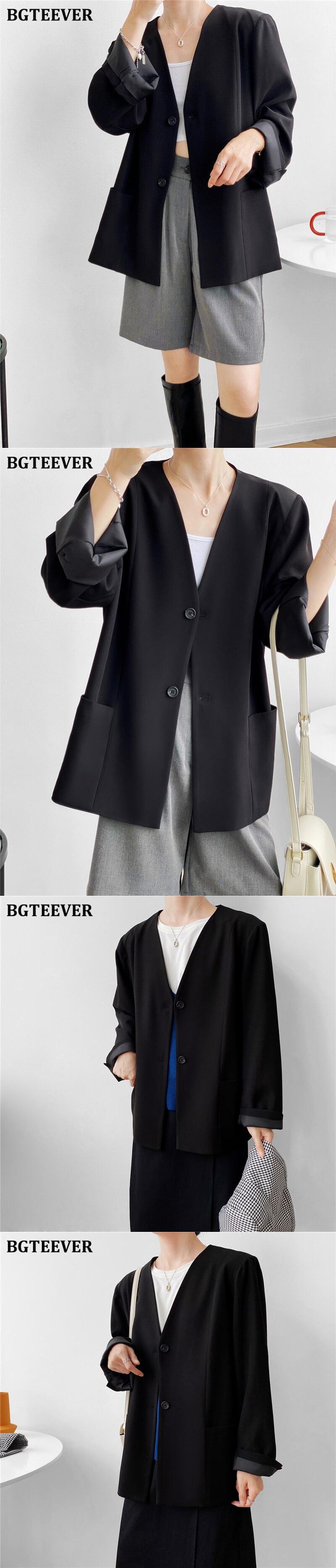 【新作】【送料無料】 BGTEEVER秋Vネックブレザー長袖ルーズポケットスーツジャケットレディースアウタートップス2020 ロング オータム 秋物 12b137636494408