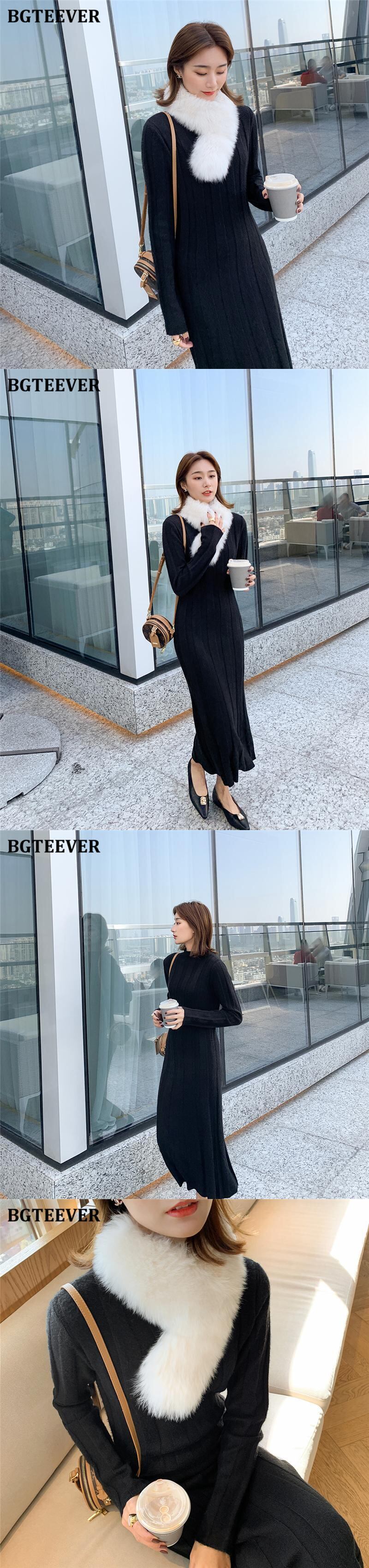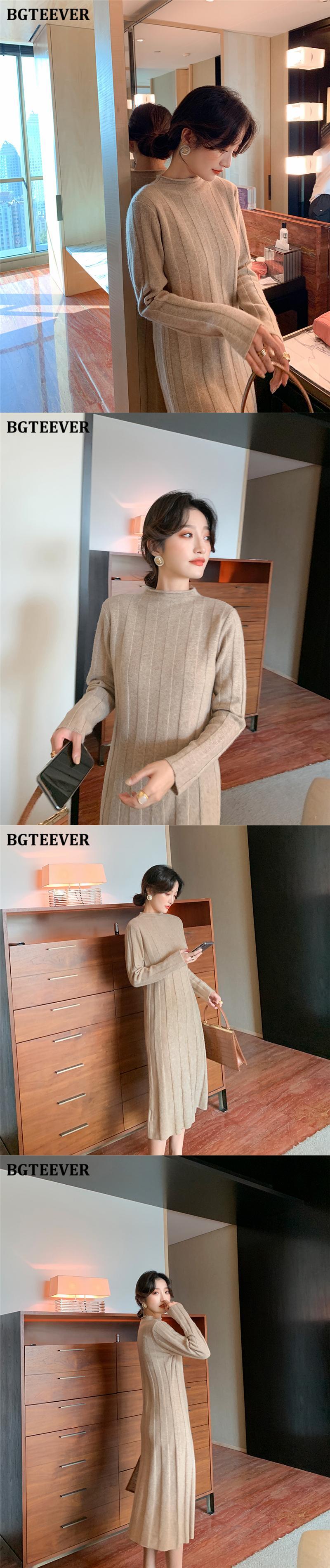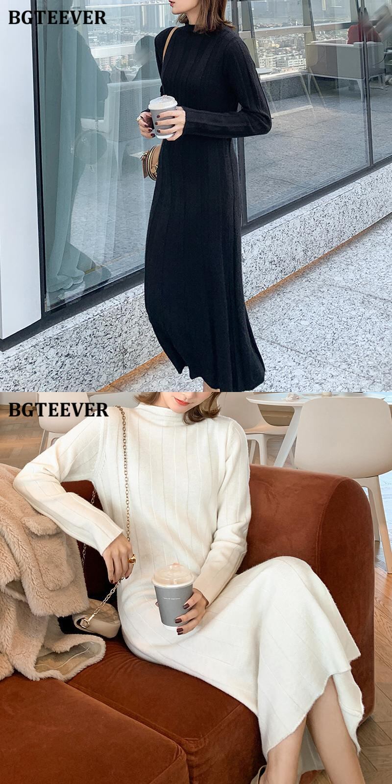 【新作】【送料無料】 BGTEEVERタートルネックレディースニットストレートドレス秋冬厚手ウォームニットミディドレスリブ編み オータム 秋物 ウィンター 冬物 12b159544254605