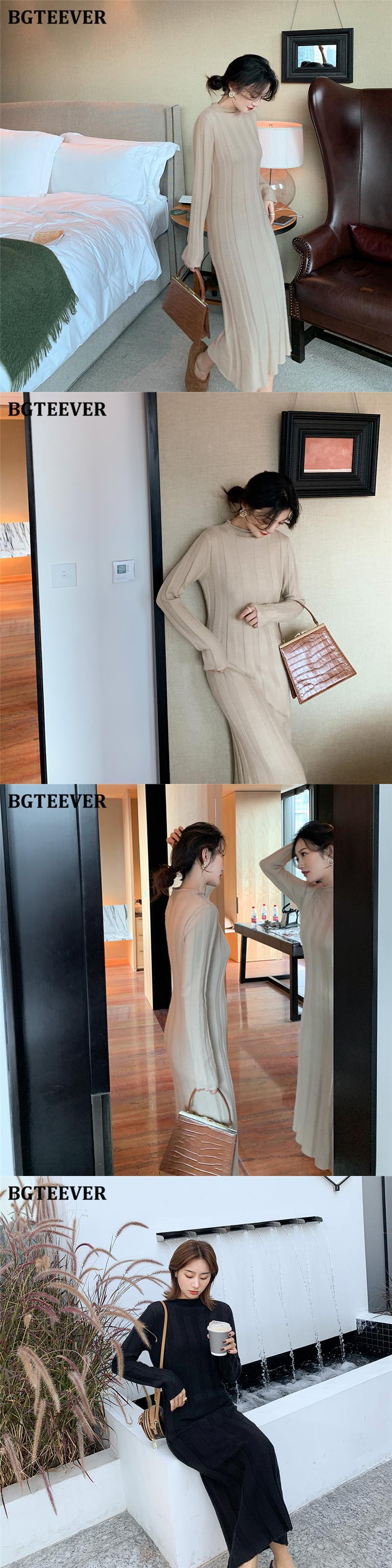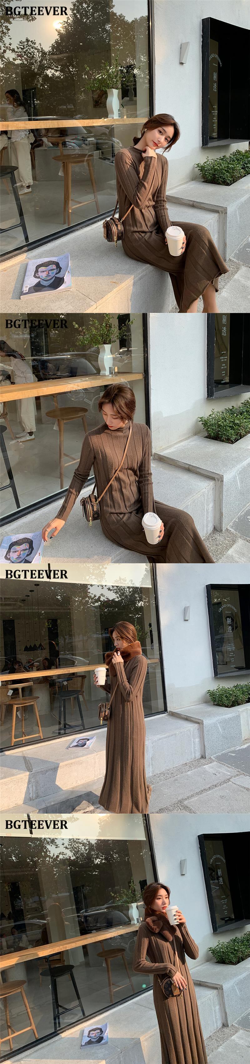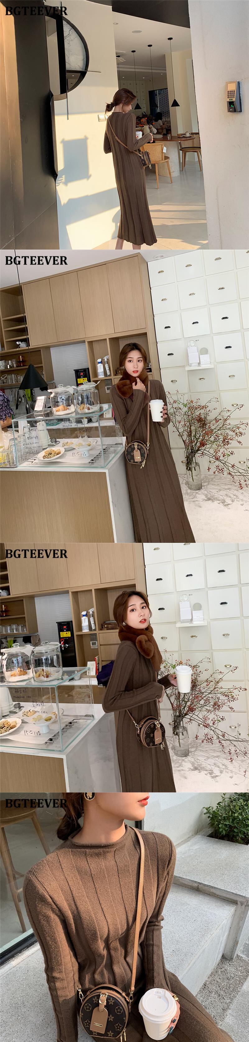 【新作】【送料無料】 BGTEEVERタートルネックレディースニットストレートドレス秋冬厚手ウォームニットミディドレスリブ編み オータム 秋物 ウィンター 冬物 12b159544254605