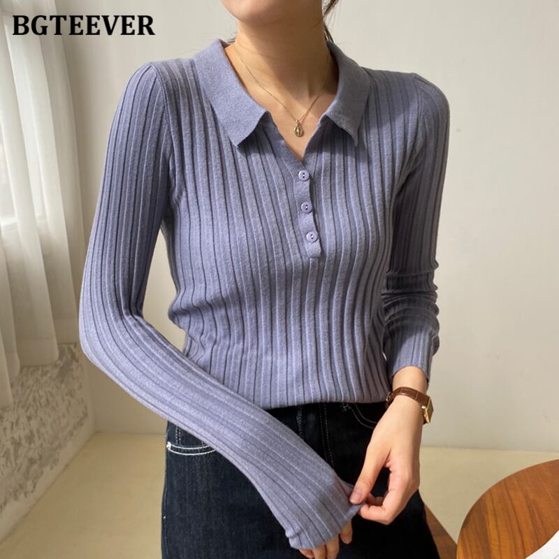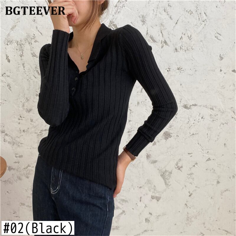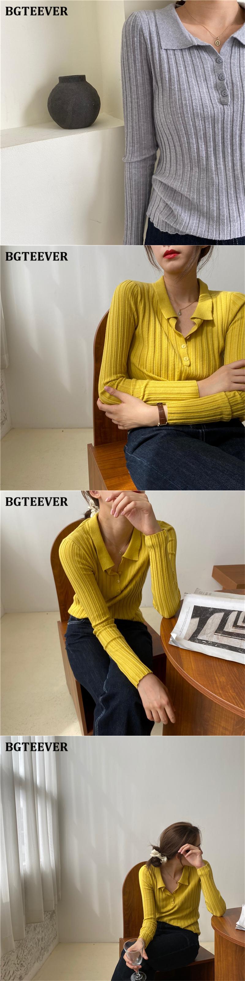 【新作】【送料無料】 BGTEEVER秋のスタイリッシュな女性ソリッドニットジャンパーラペルシングルブレストスリムセータートップス2020ベーシックニットウェア オータム 秋物 ソリッドカラー 12b144832807325