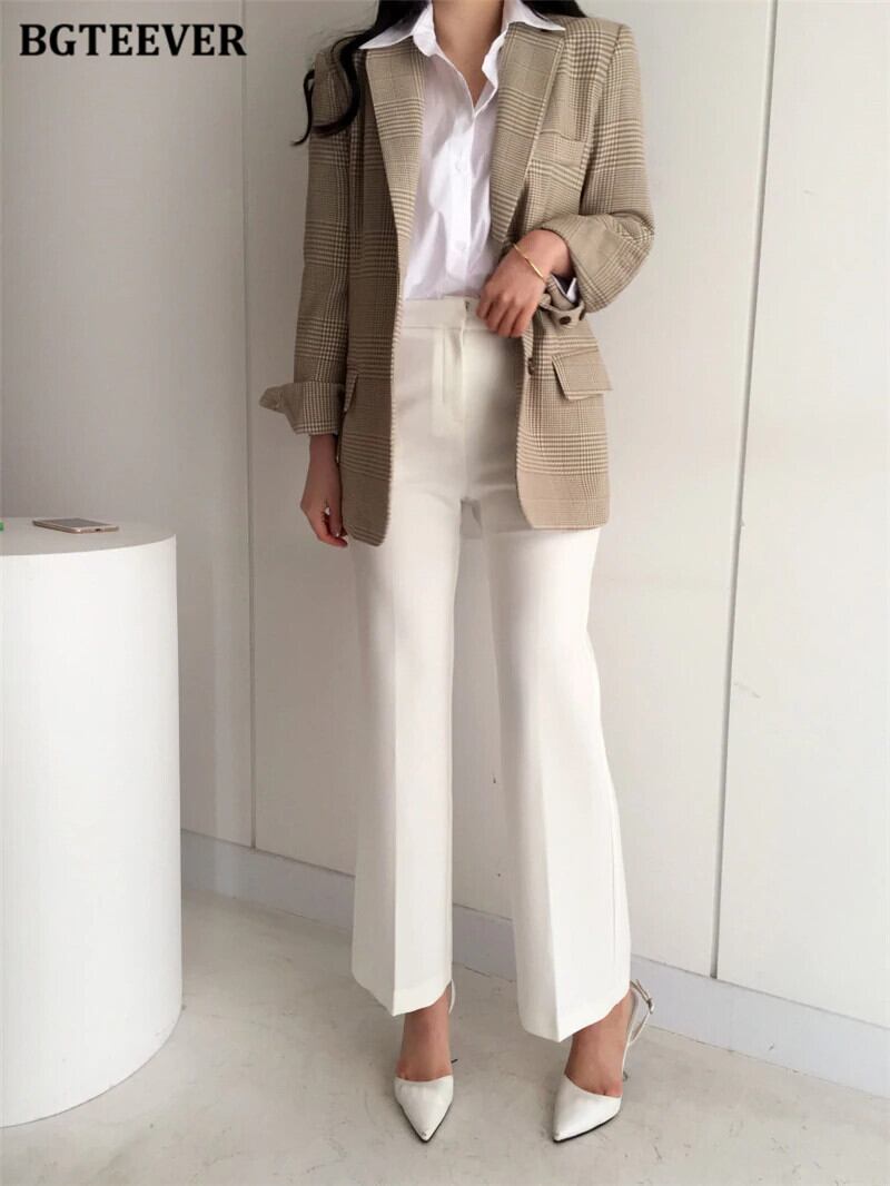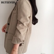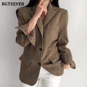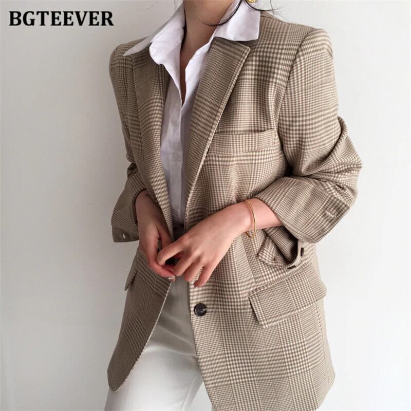 【新作】【送料無料】 BGTEEVERヴィンテージチェック柄スーツジャケットレディースシングルブレストアウタートップス長袖ルーズブレイザー2020 ロング ビンテージ 12b149205321411